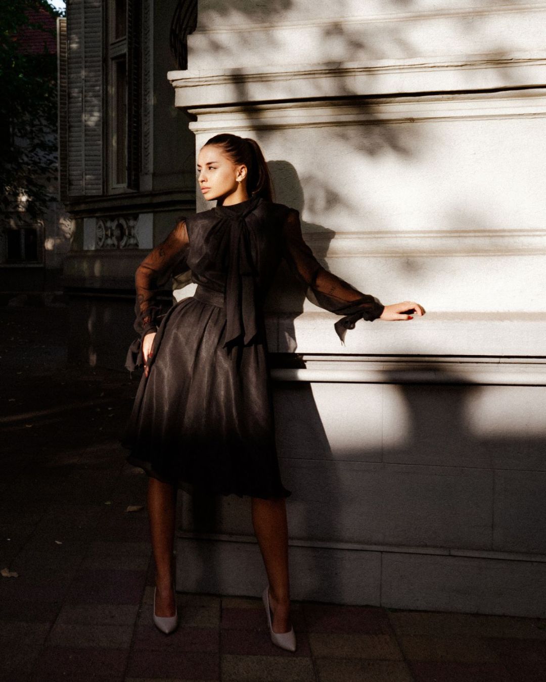 Rochie mini Lucky cu volane din amestec de matase Lime