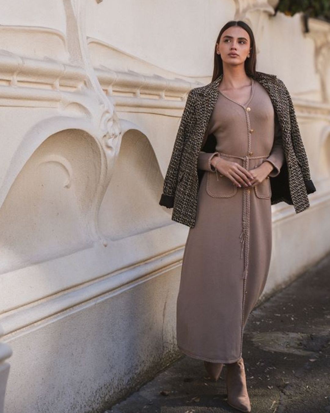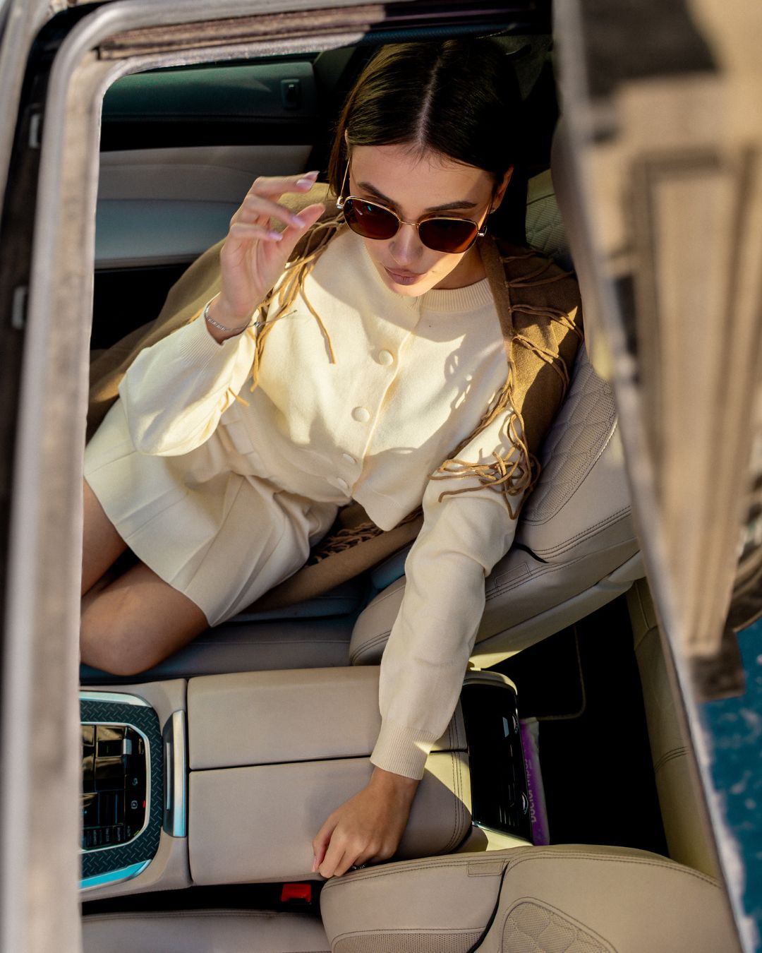 Rochie tricot cu pliseuri si jacheta asortata Ivory
