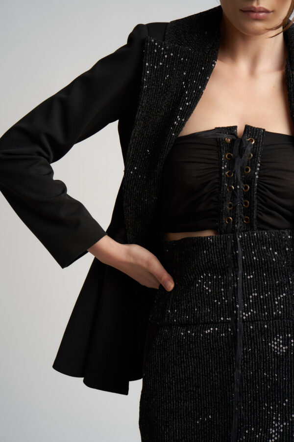 Sacou stil rochie Ringoux Black cu umeri sculpturali
