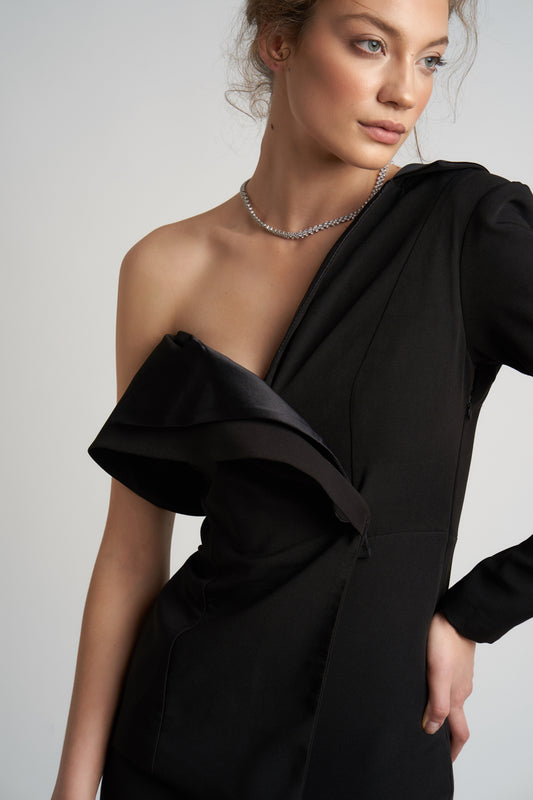 Sacou stil rochie Ringoux Black cu umeri sculpturali