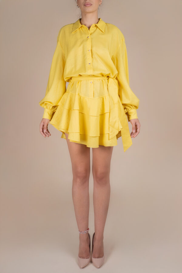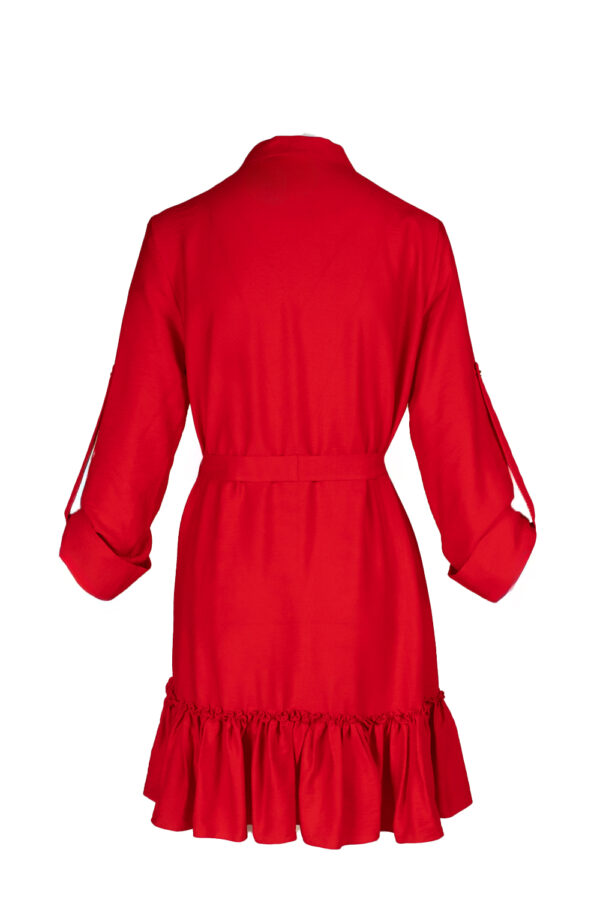Rochie camasa midi cu volan si cordon Burnt Orange
