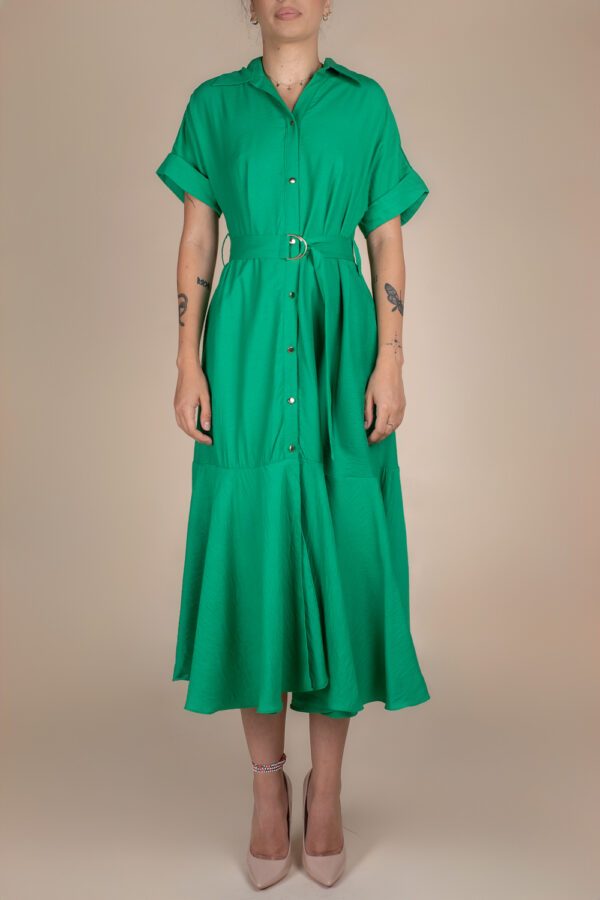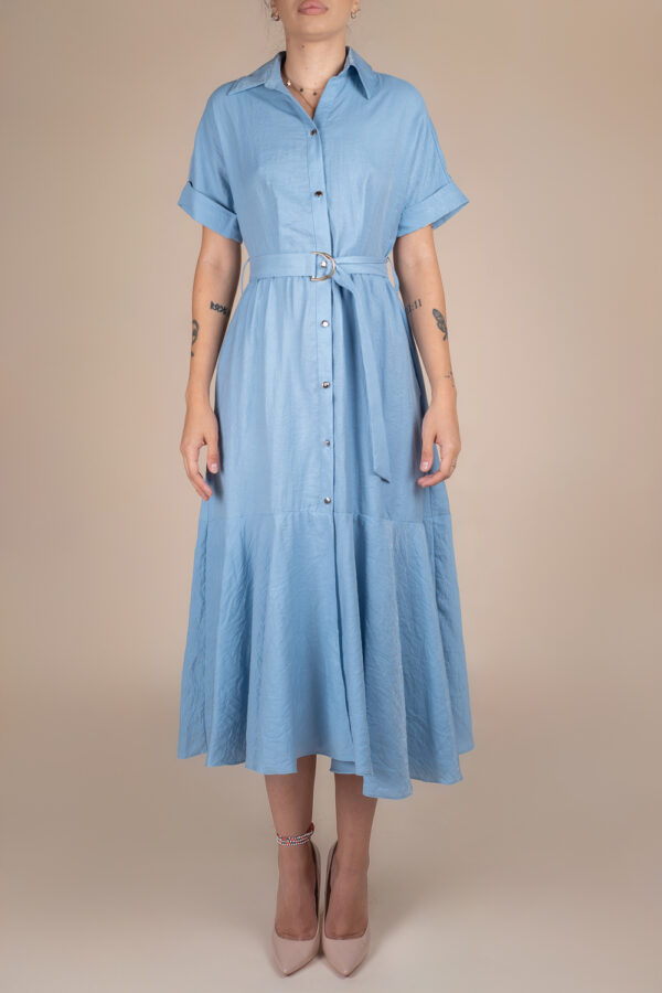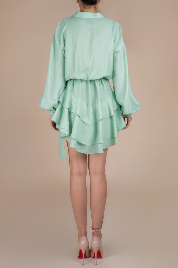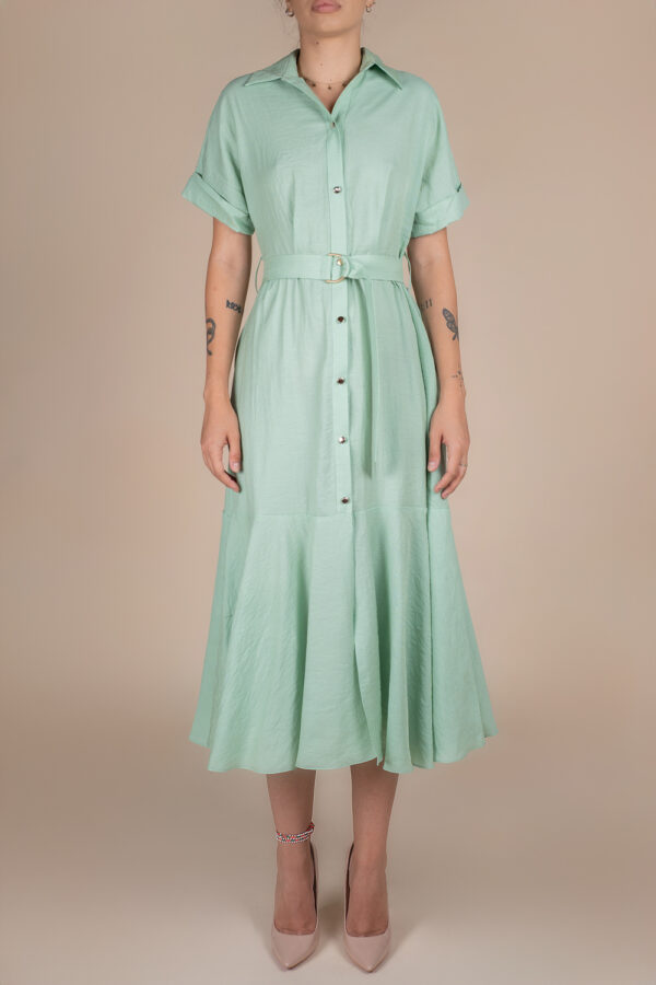 Rochie camasa midi cu volan si cordon Pearl Aqua