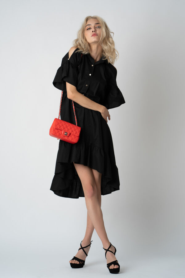 Sacou stil rochie Ringoux Black cu umeri sculpturali