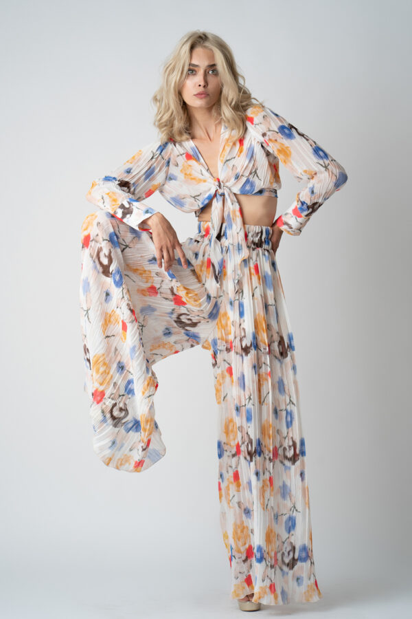 Rochie mini plisata cu volane si imprimeu floral pictural