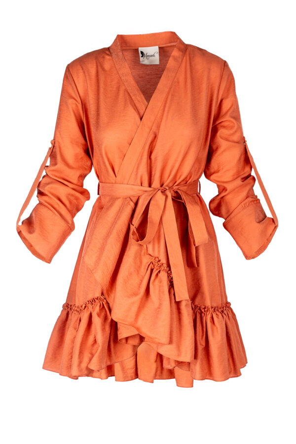 Rochie petrecuta cu mansete late si volan Sunset Orange