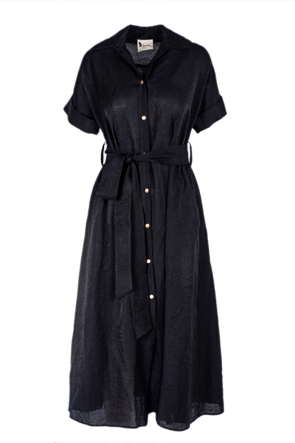 Rochie camasa midi Selene cu buzunare si cordon Black