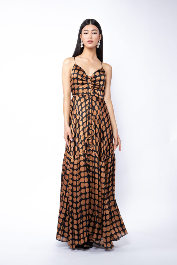 Rochie lunga din matase cu bretele si imprimeu cu buline