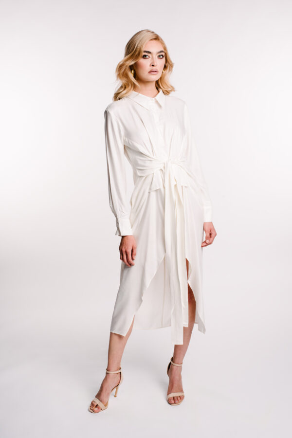 Rochie camasa midi Selene cu buzunare si cordon Dark Beige