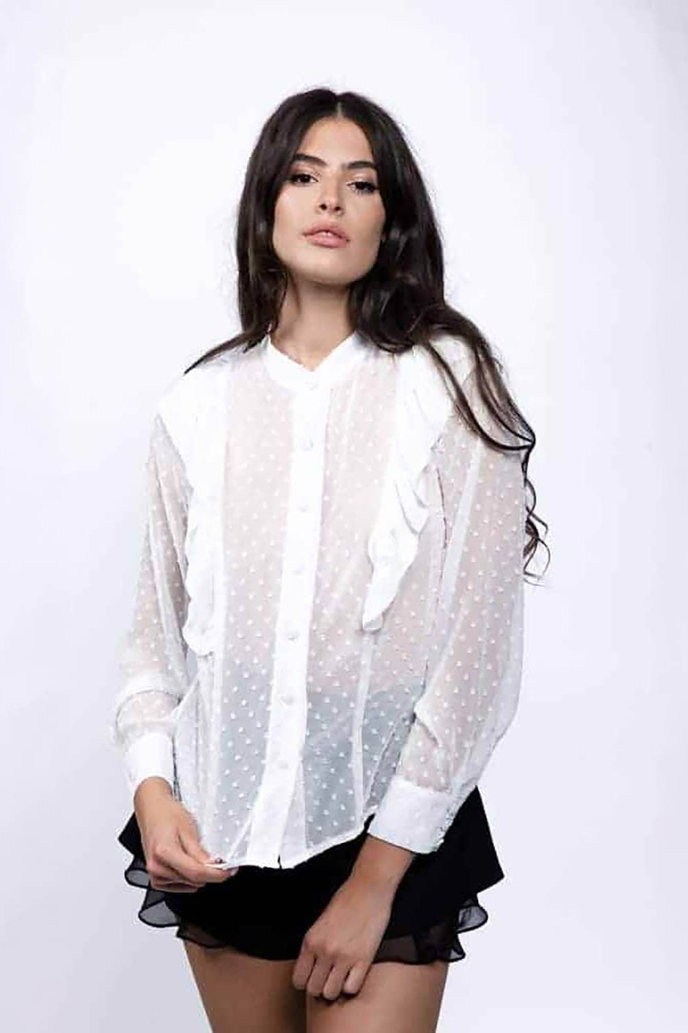 Camasa cu volane si buline white