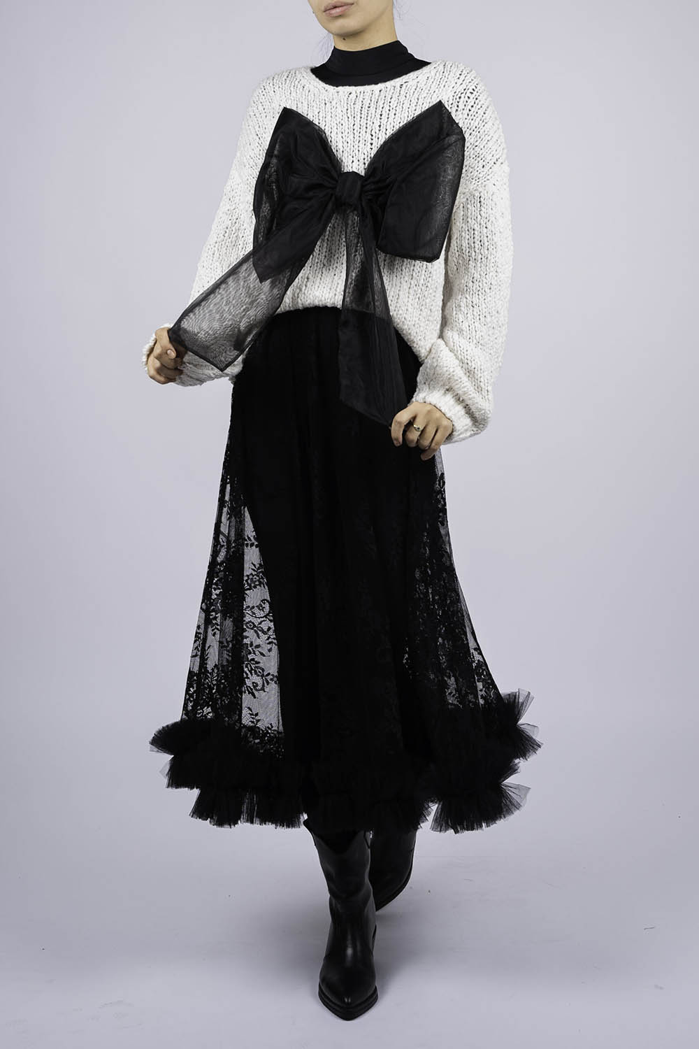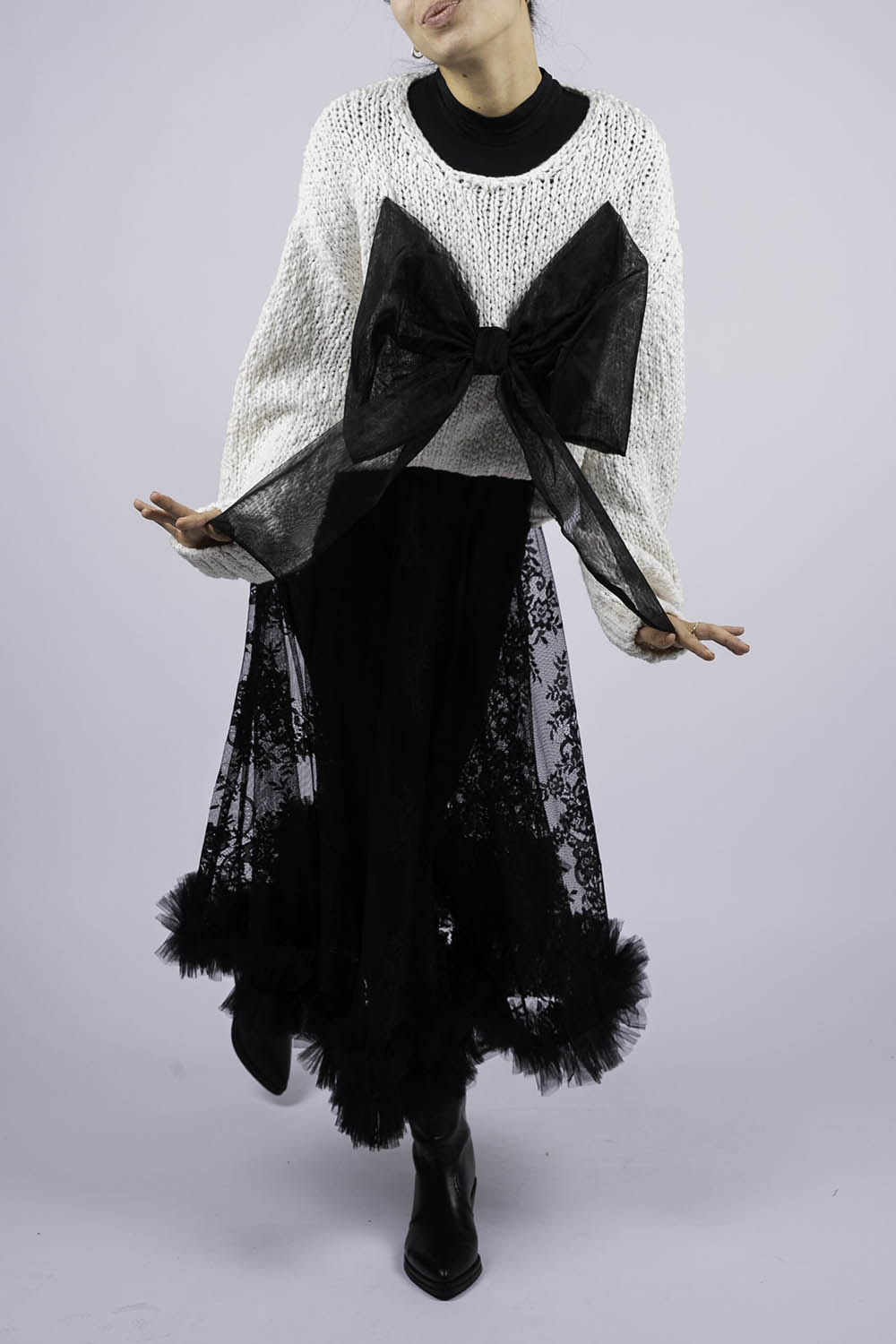 Atentie! Produs customizabil, selectati la checkout versiunea dorita. Pulover statement, perfect pentru un look chic și feminin. Realizat dintr-un material moale și plăcut, acest pulover este completat de o fundă detașabilă, care adaugă un aer sofisticat ținutei tale. Ideal pentru zilele răcoroase de toamnă și iarnă.