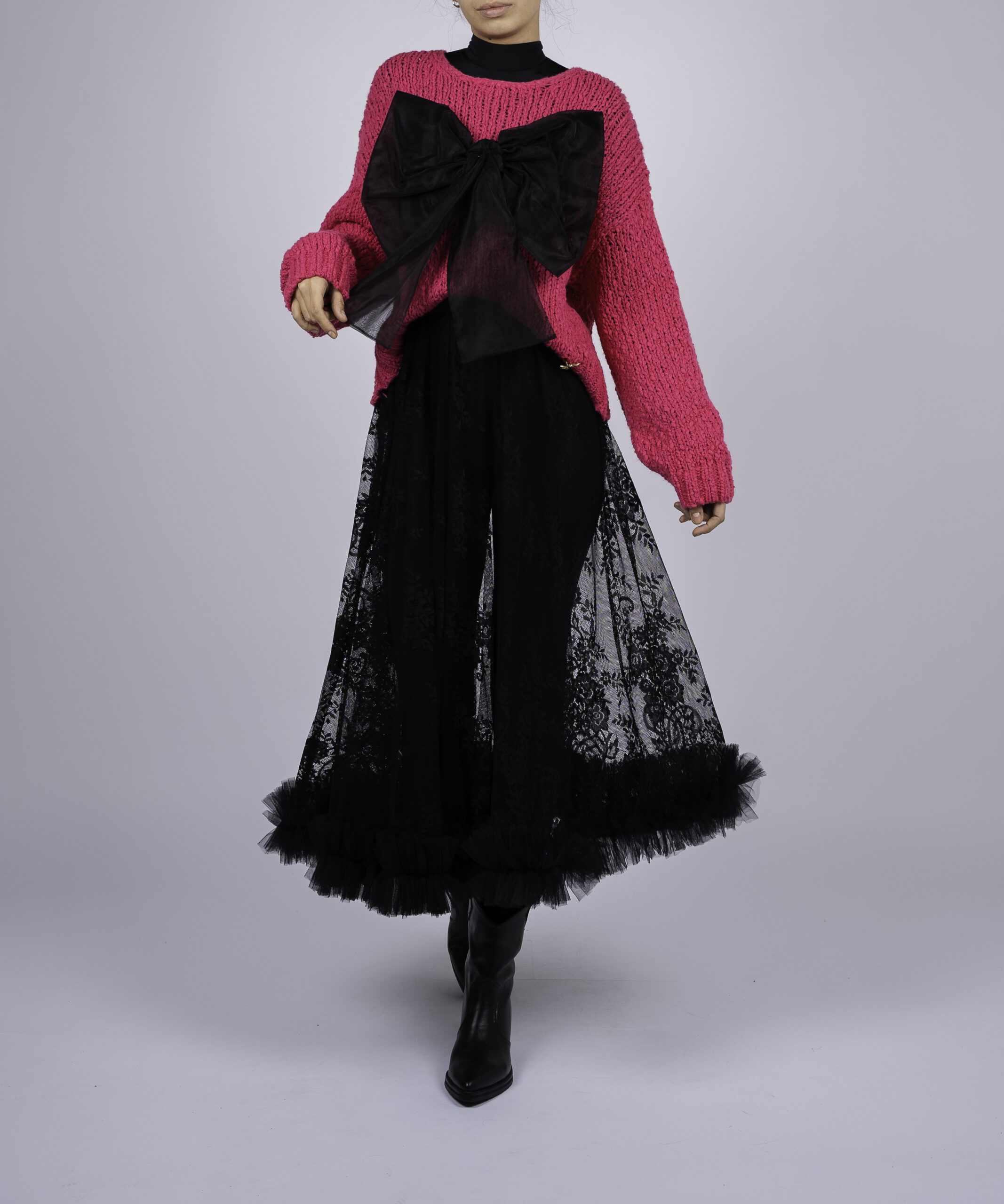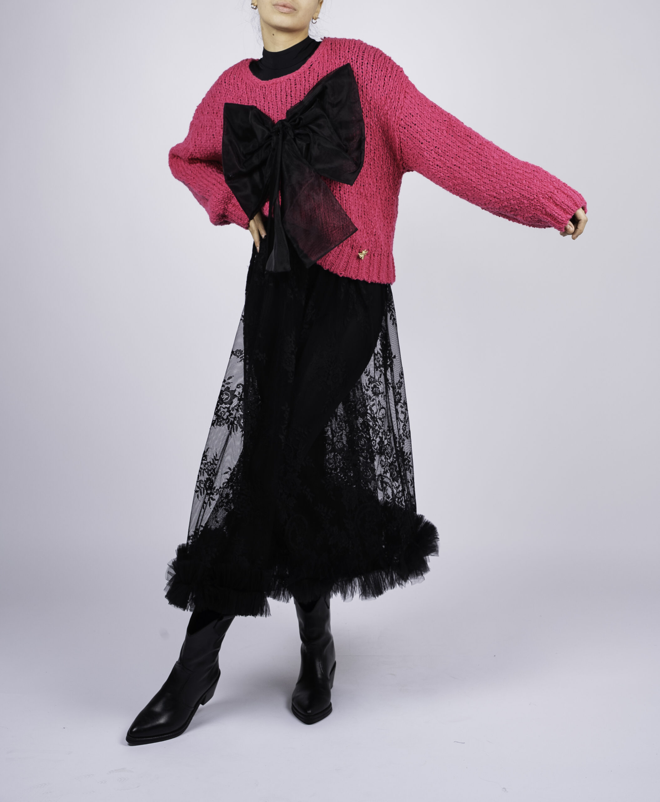 Atentie! Produs customizabil, selectati la checkout versiunea dorita. Pulover statement, perfect pentru un look chic și feminin. Realizat dintr-un material moale și plăcut, acest pulover este completat de o fundă detașabilă, care adaugă un aer sofisticat ținutei tale. Ideal pentru zilele răcoroase de toamnă și iarnă.