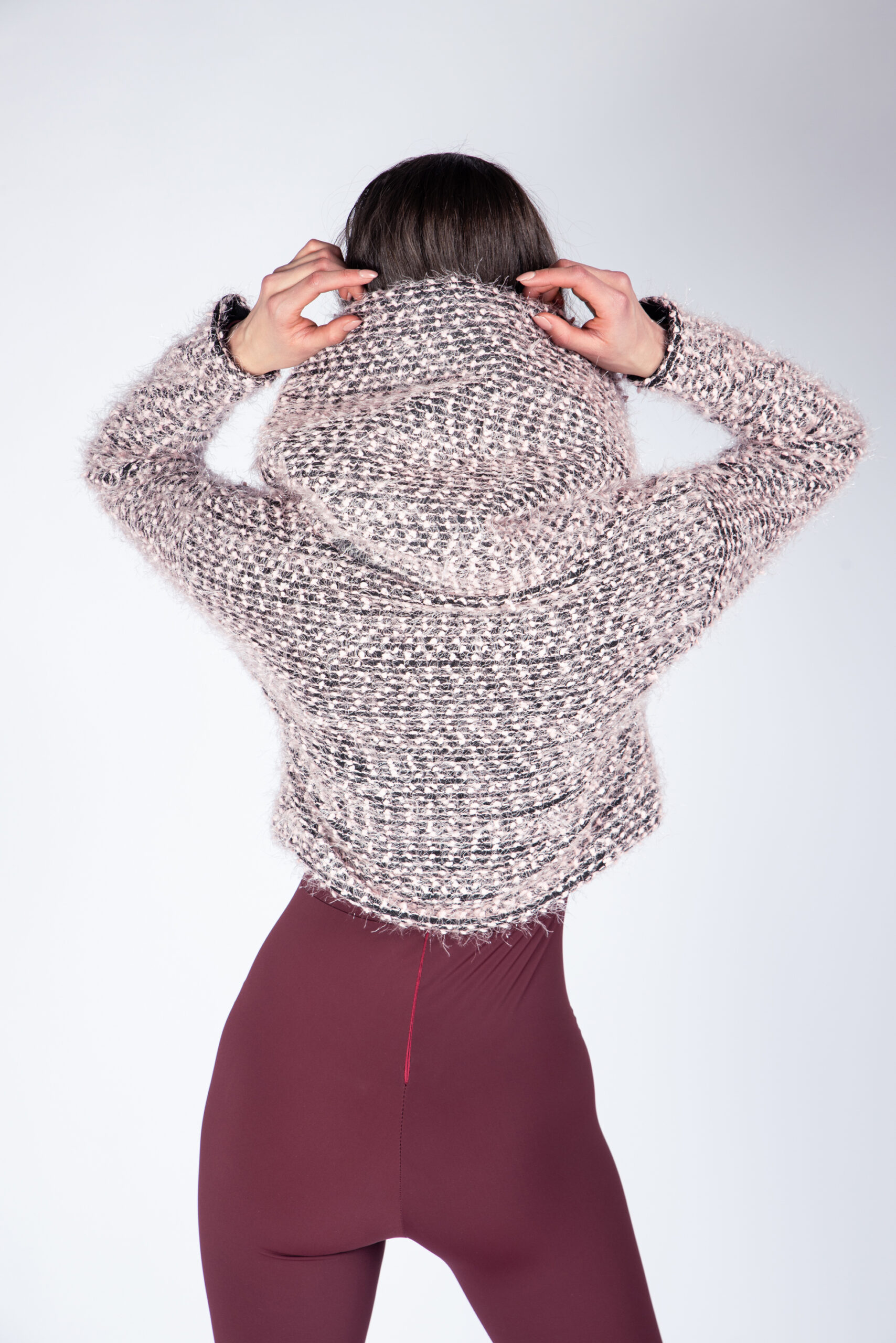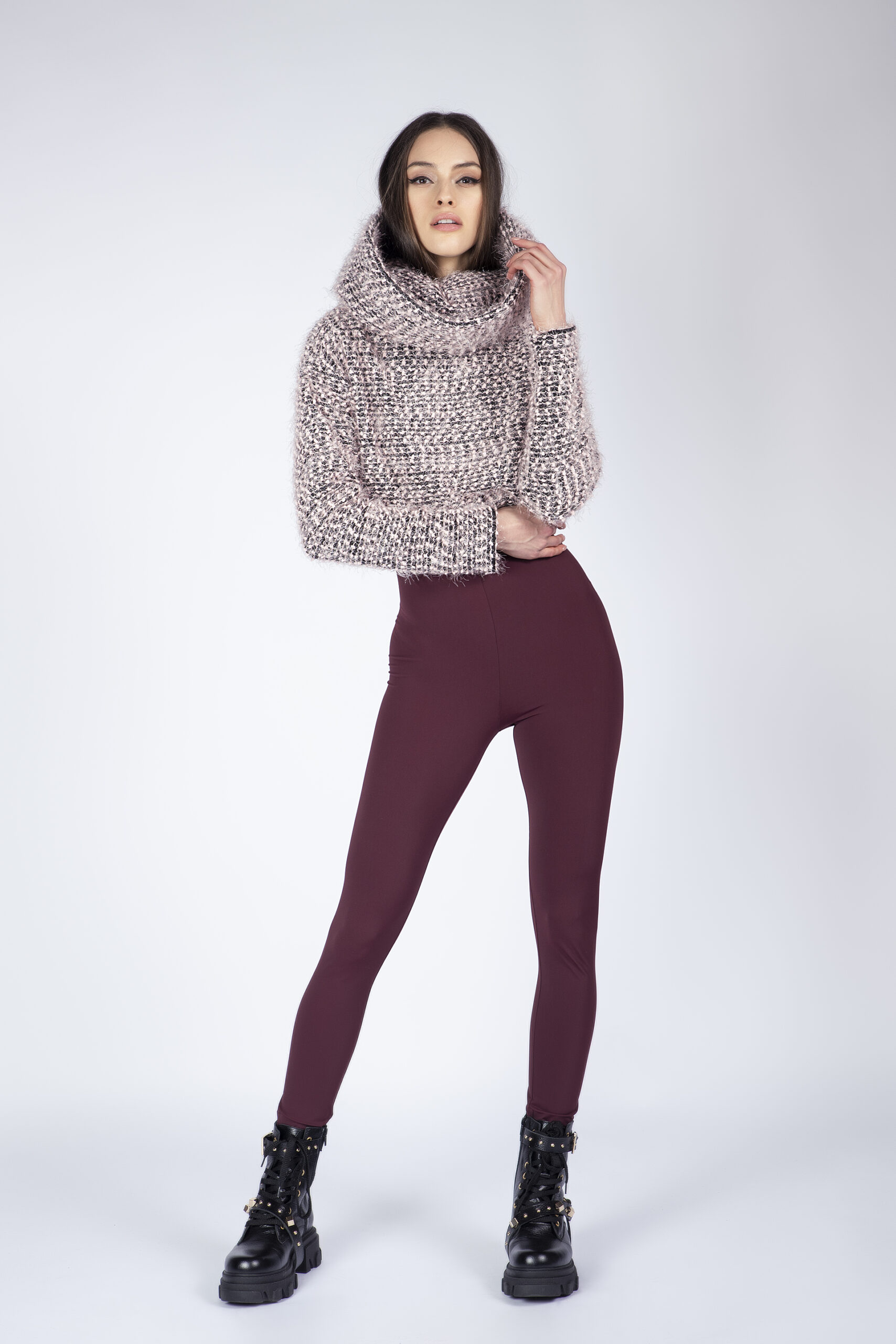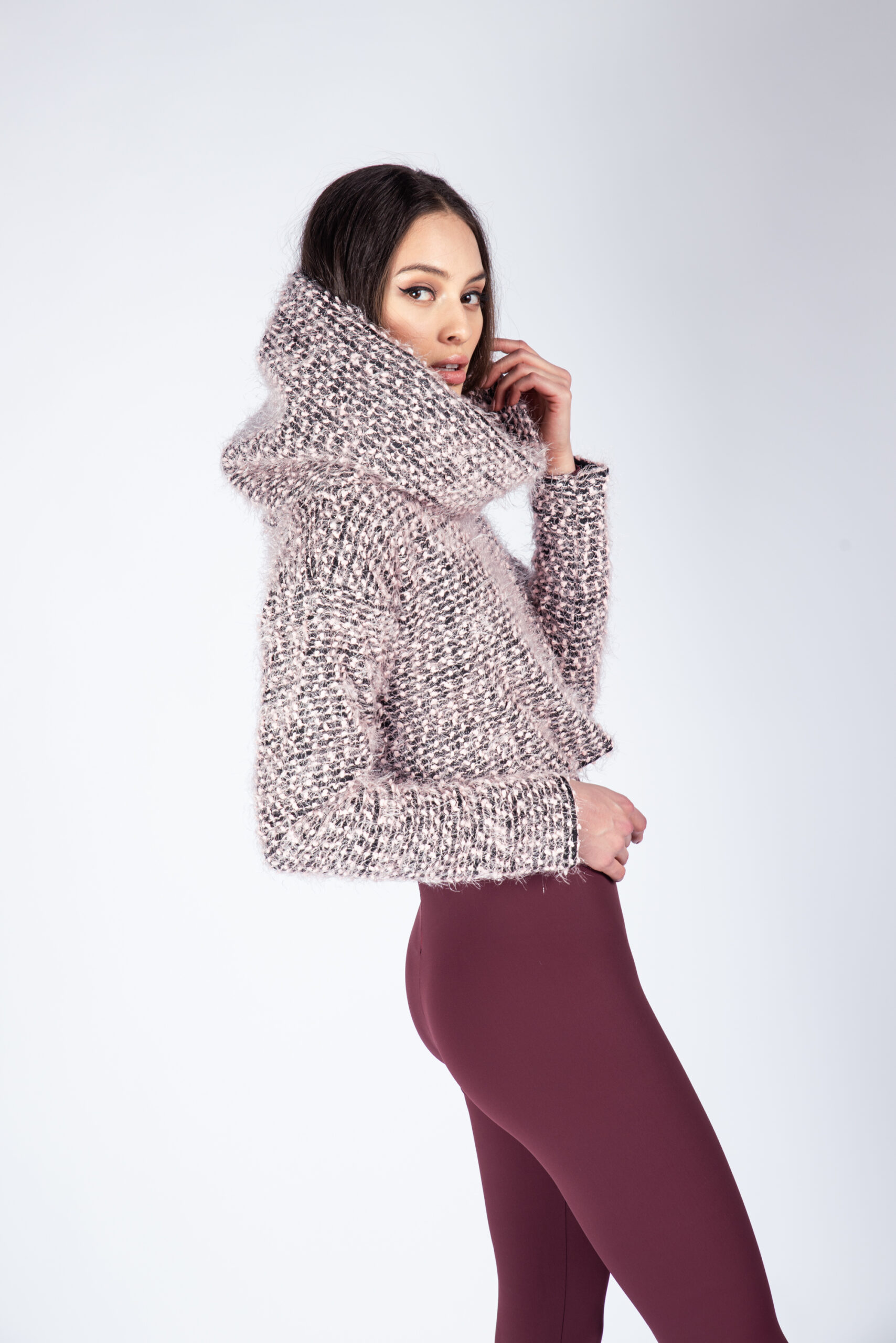 Pulover scurt cu textura bogata si design modern, evidentiata de gulerul amplu tip esarfa si linia lejera. O piesa statement, cu aer sofisticat si feminin, ideala pentru tinute urbane si combinatii de sezon.