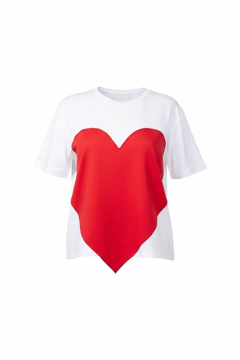 Tricou cu design expresiv si detaliu statement in forma de inima, creat pentru tinute feminine cu impact vizual. Contrastul dintre baza simpla si aplicatia grafica adauga personalitate si transforma piesa intr-un accent central al look-ului. Ideal pentru styling-uri moderne, purtat ca piesa-cheie alaturi de pantaloni statement sau fuste minimal.