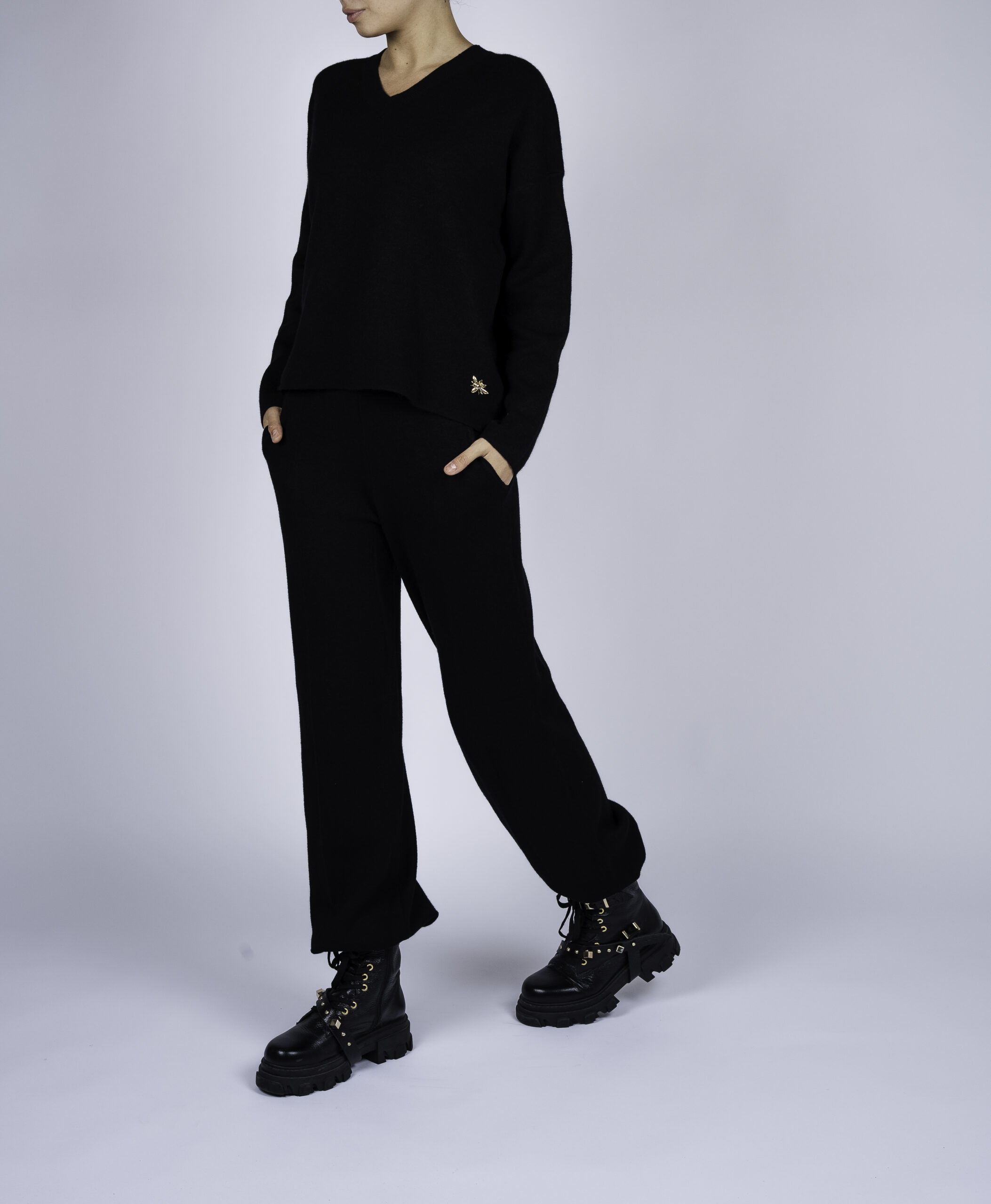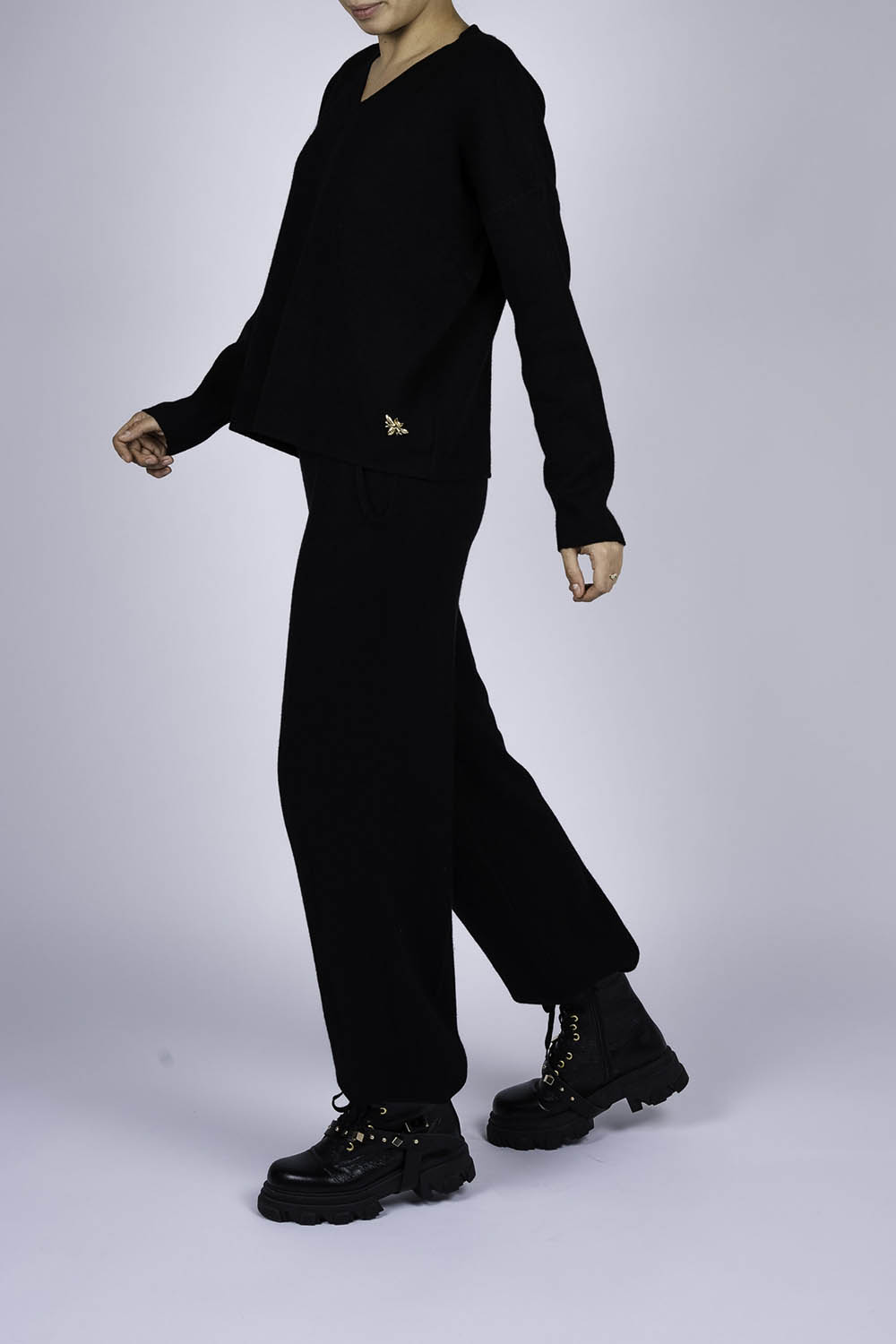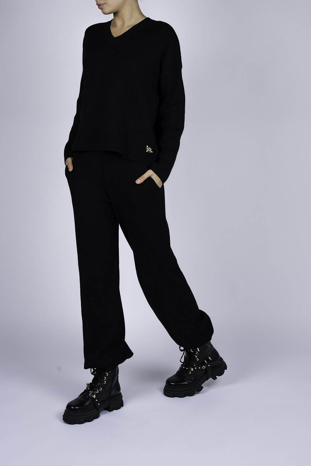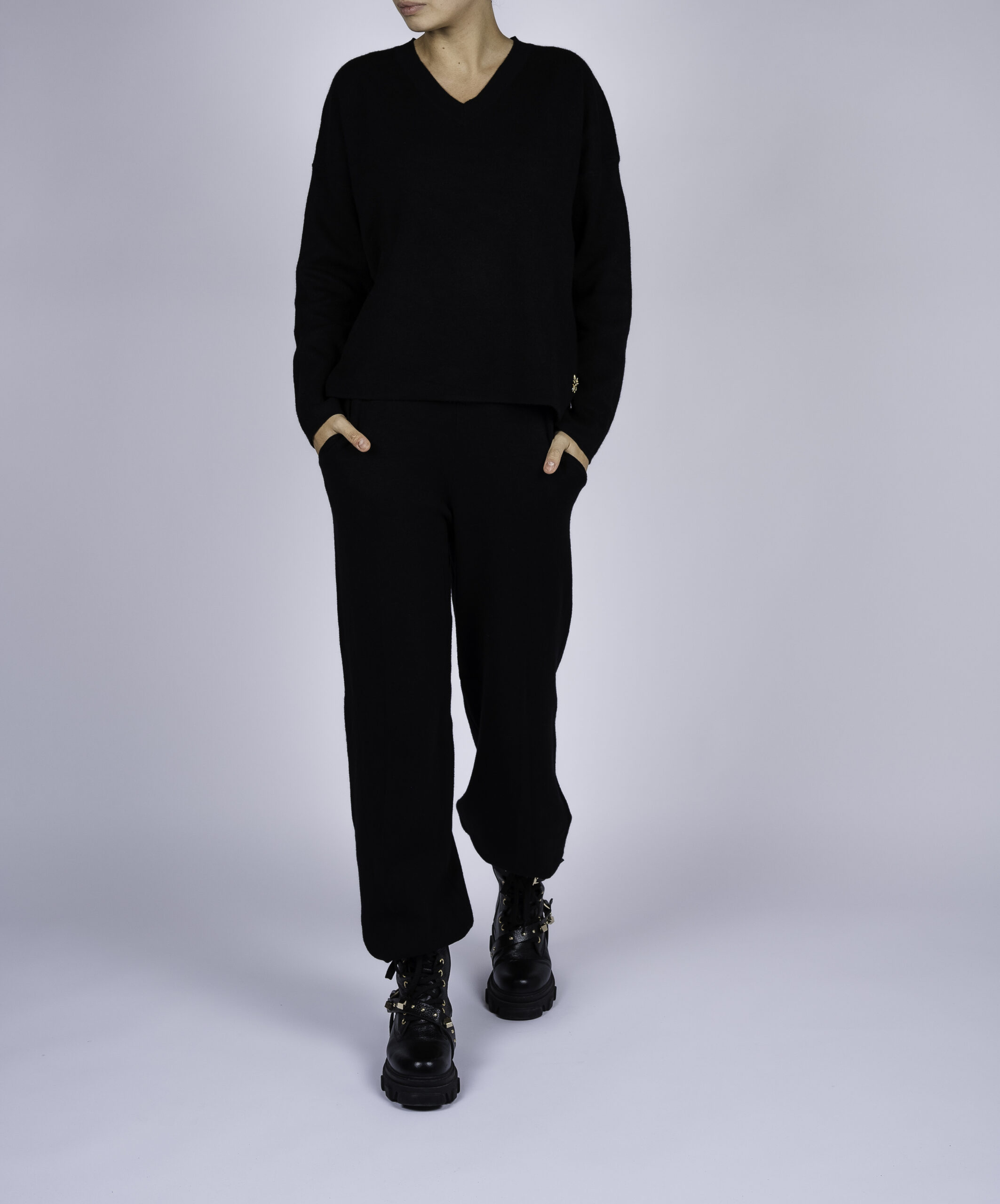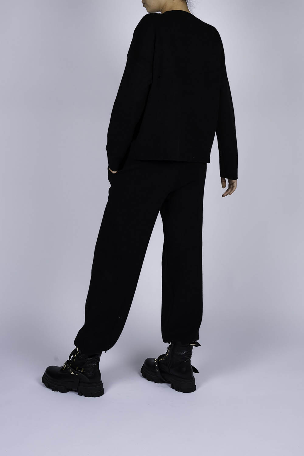 Compleu casual Black din modal cu/fara funda detasabila