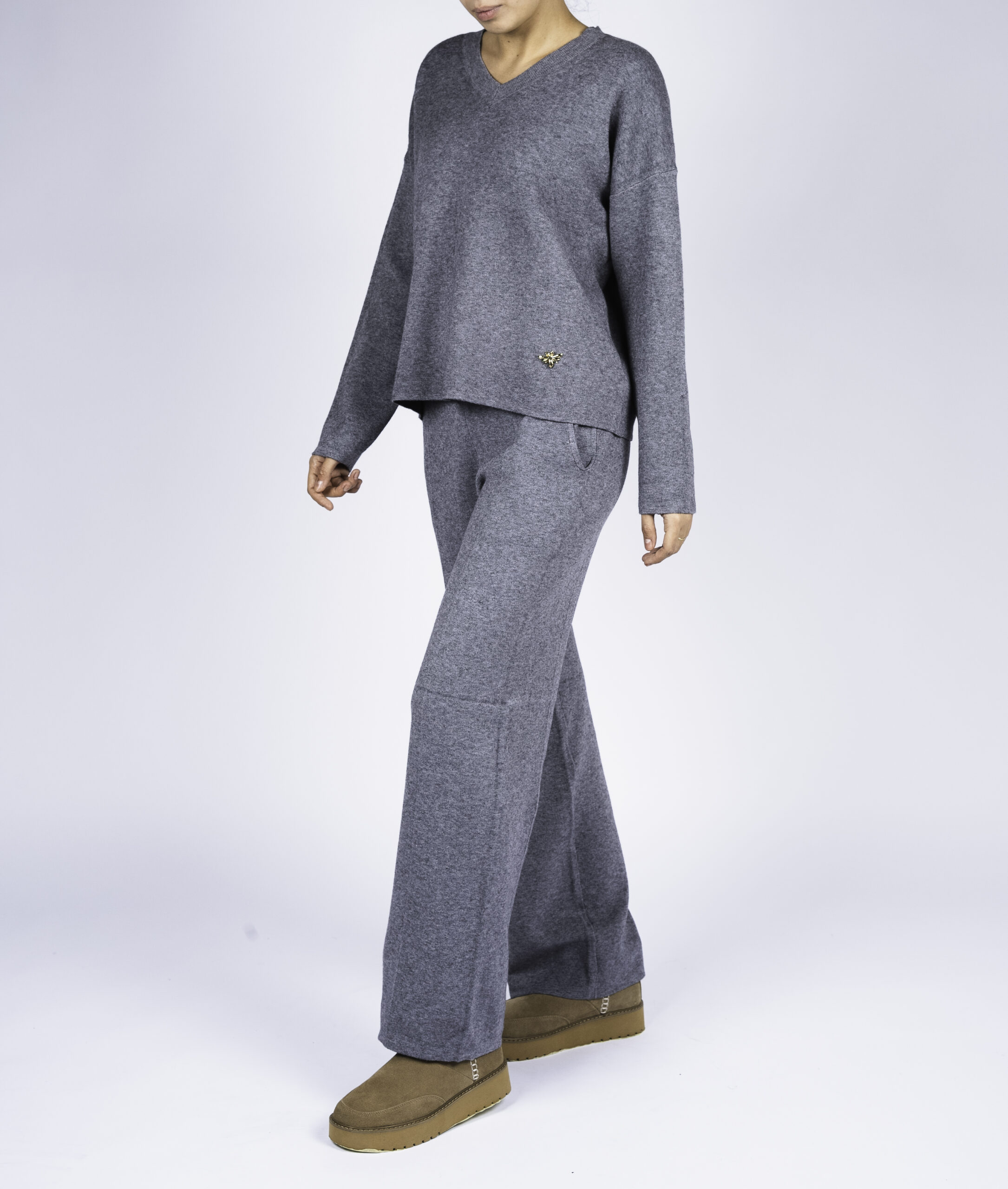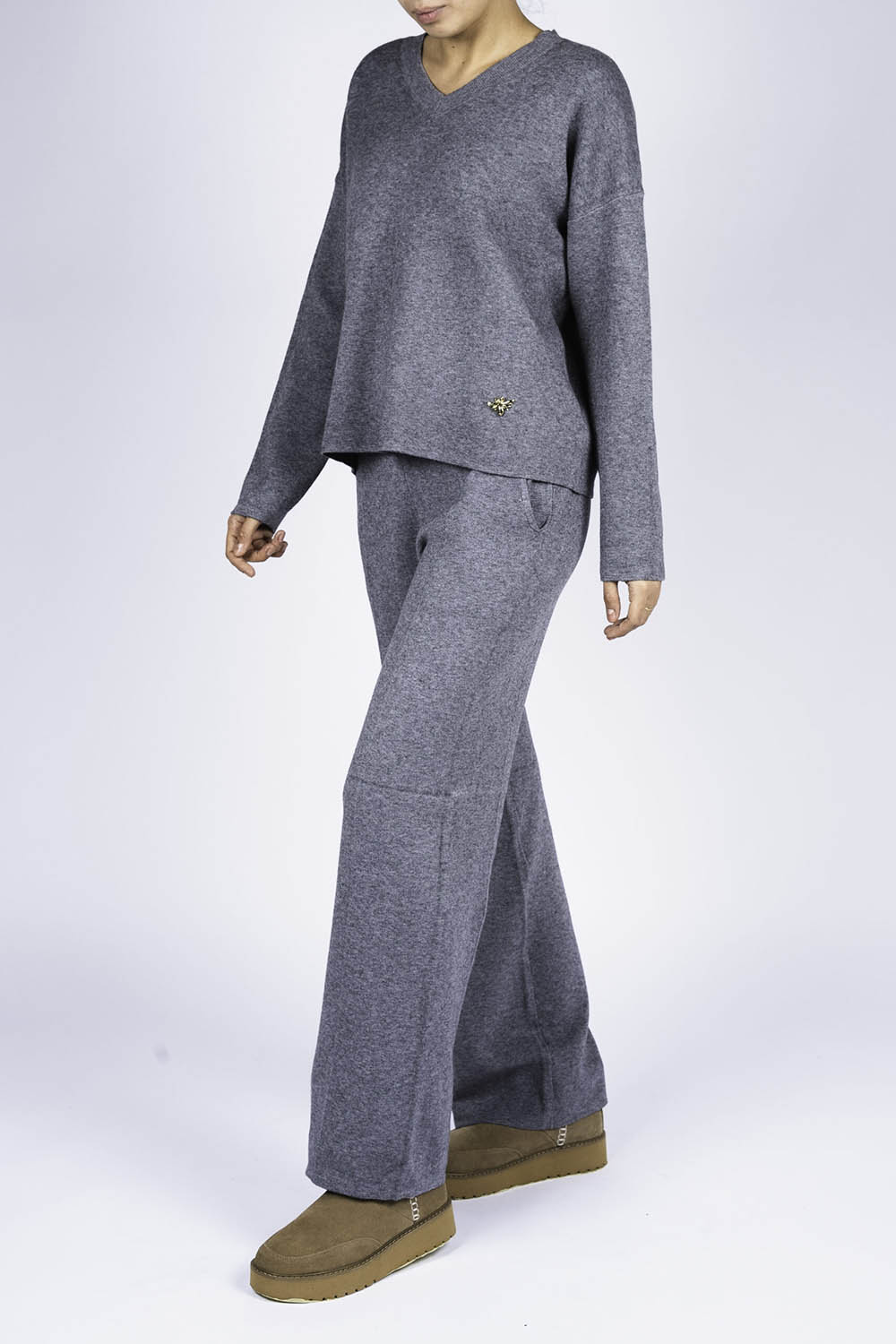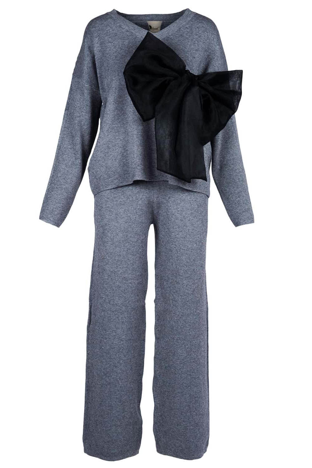 Compleu casual gri inchis din modal cu/fara funda detasabila