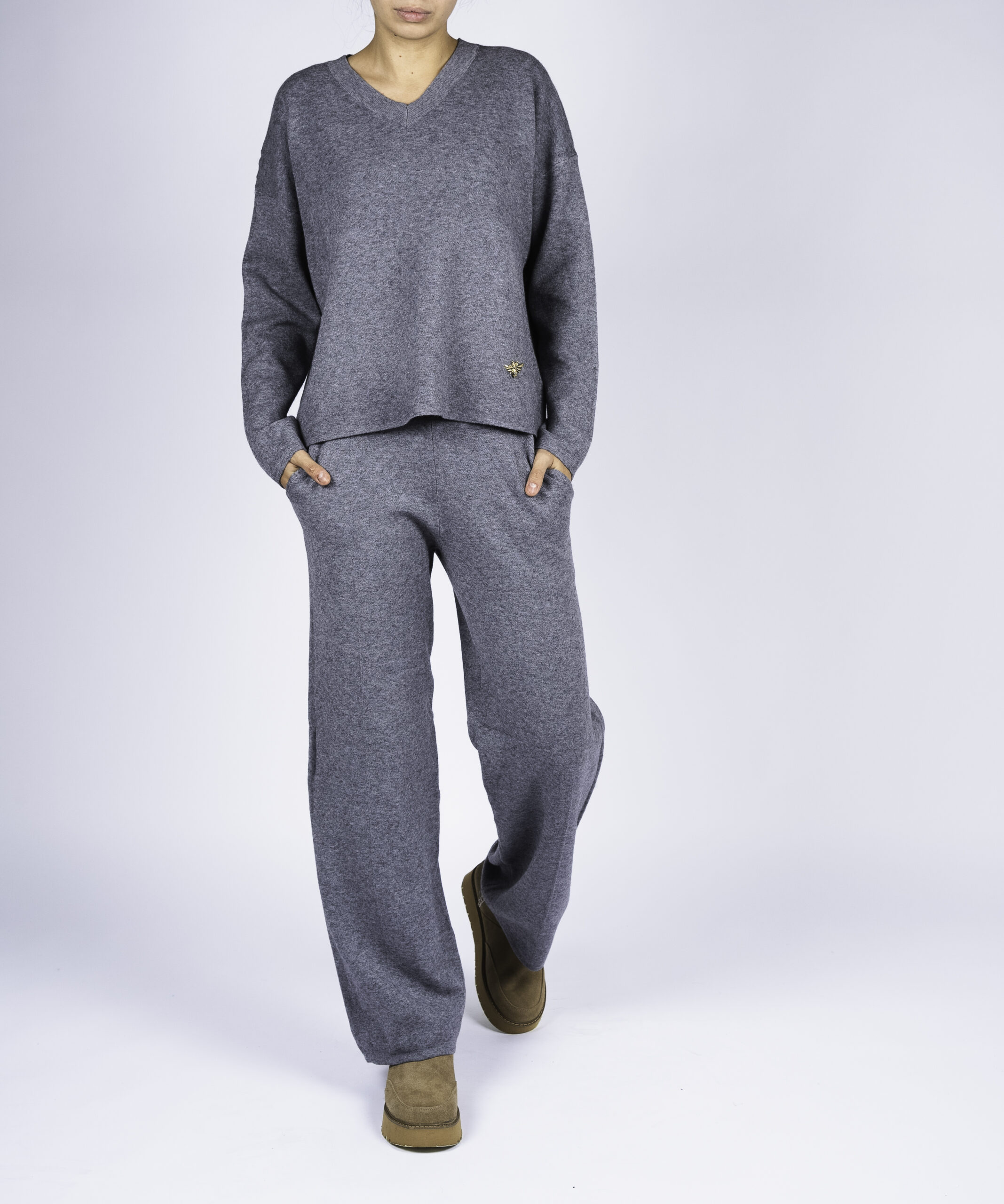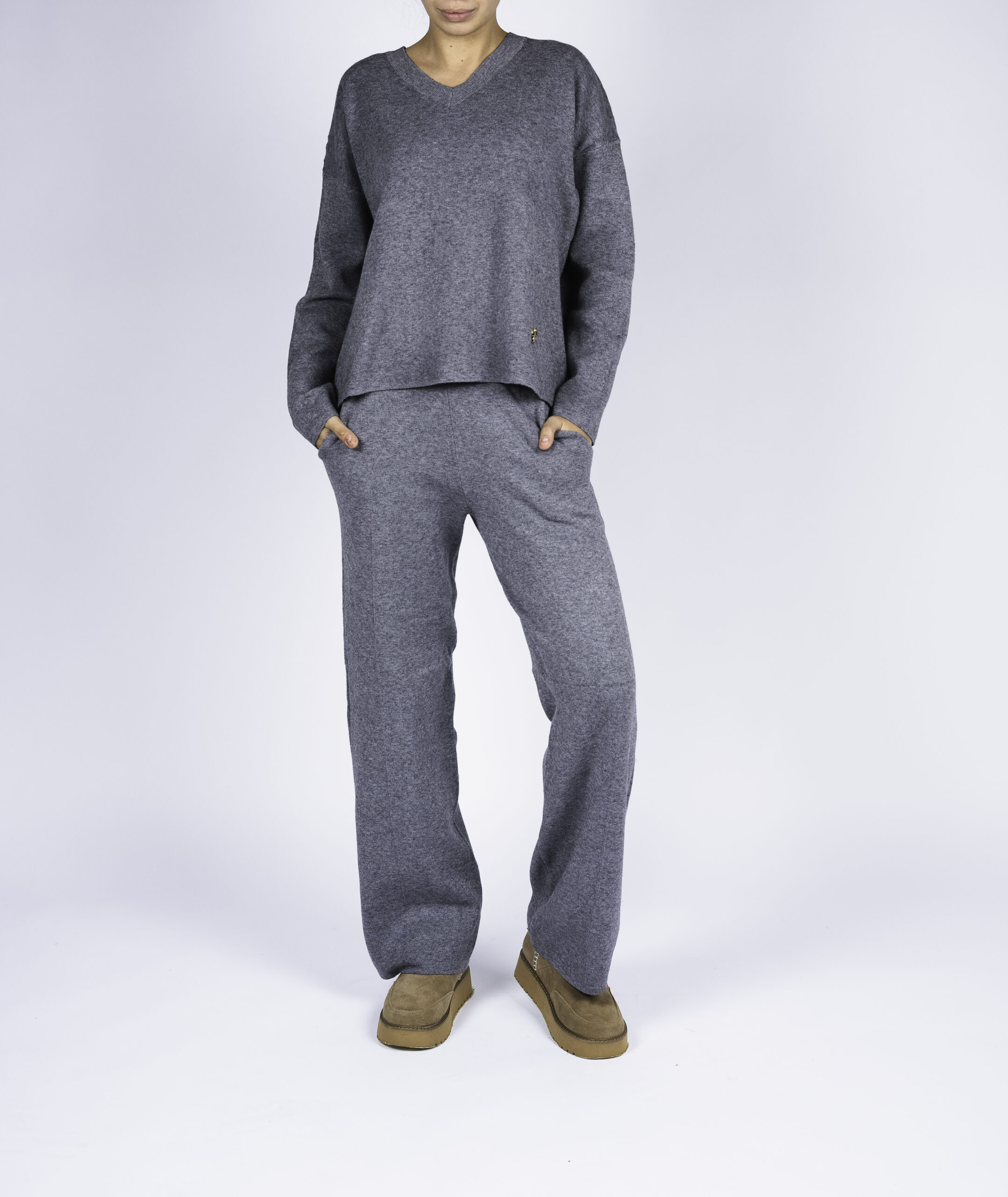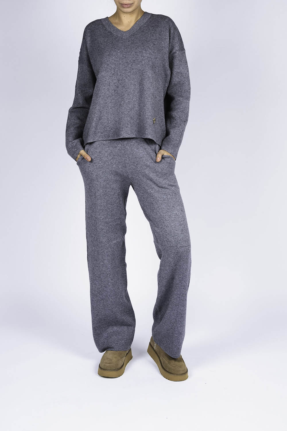 Compleu casual gri inchis din modal cu/fara funda detasabila