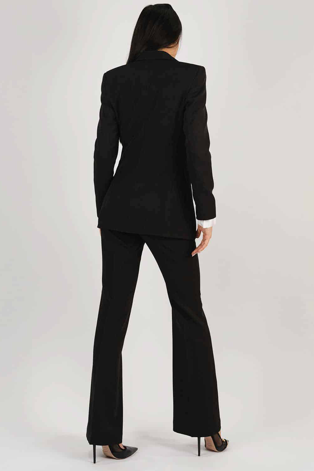 Acest costum clasic oferă un look elegant și sofisticat. Sacoul cu o croială structurată și pantalonii cu o linie dreaptă creează o siluetă rafinată și feminină. Culoarea face ca acest costum să fie o piesă versatilă, ideală pentru ocazii formale sau întâlniri de afaceri.
