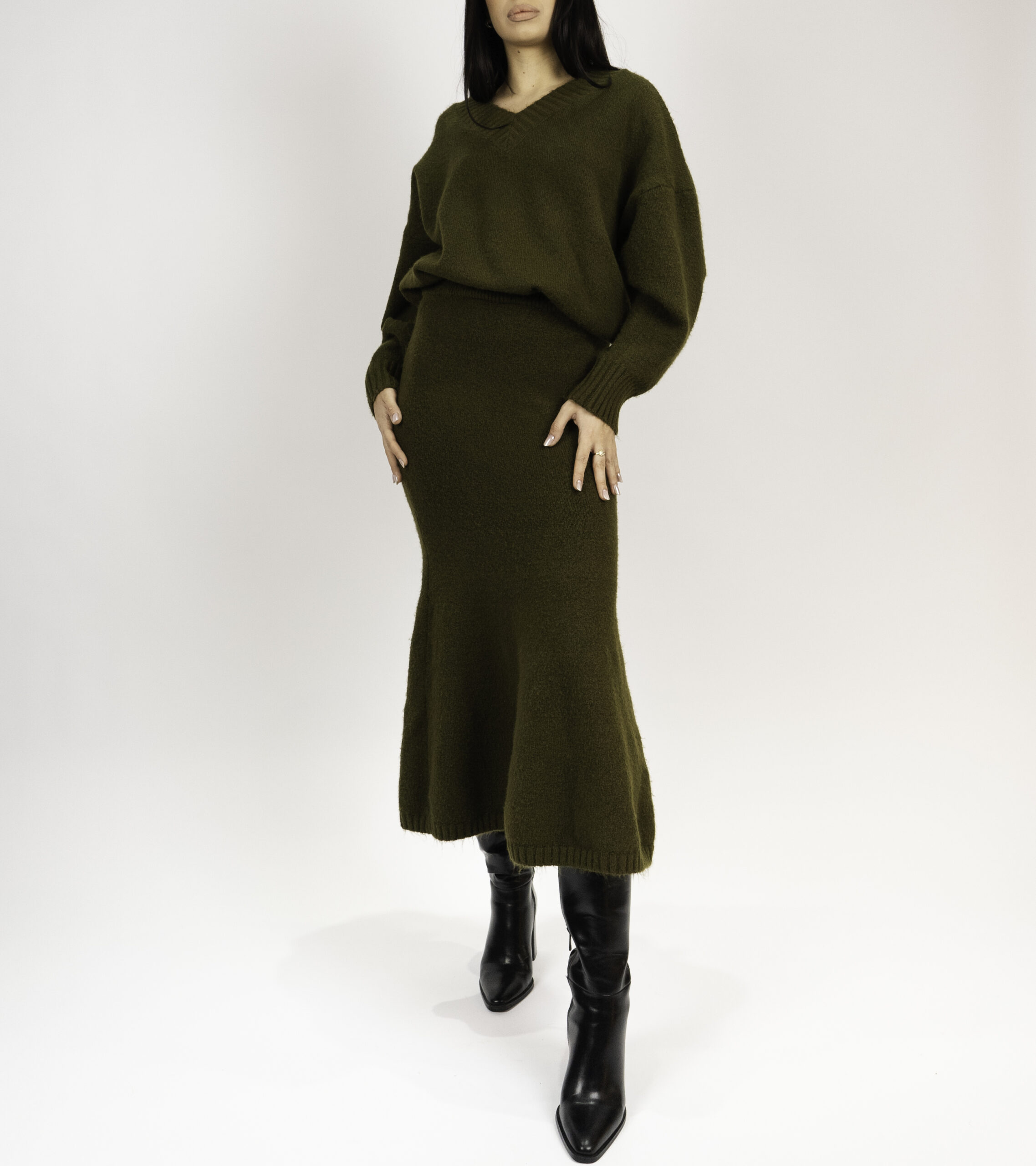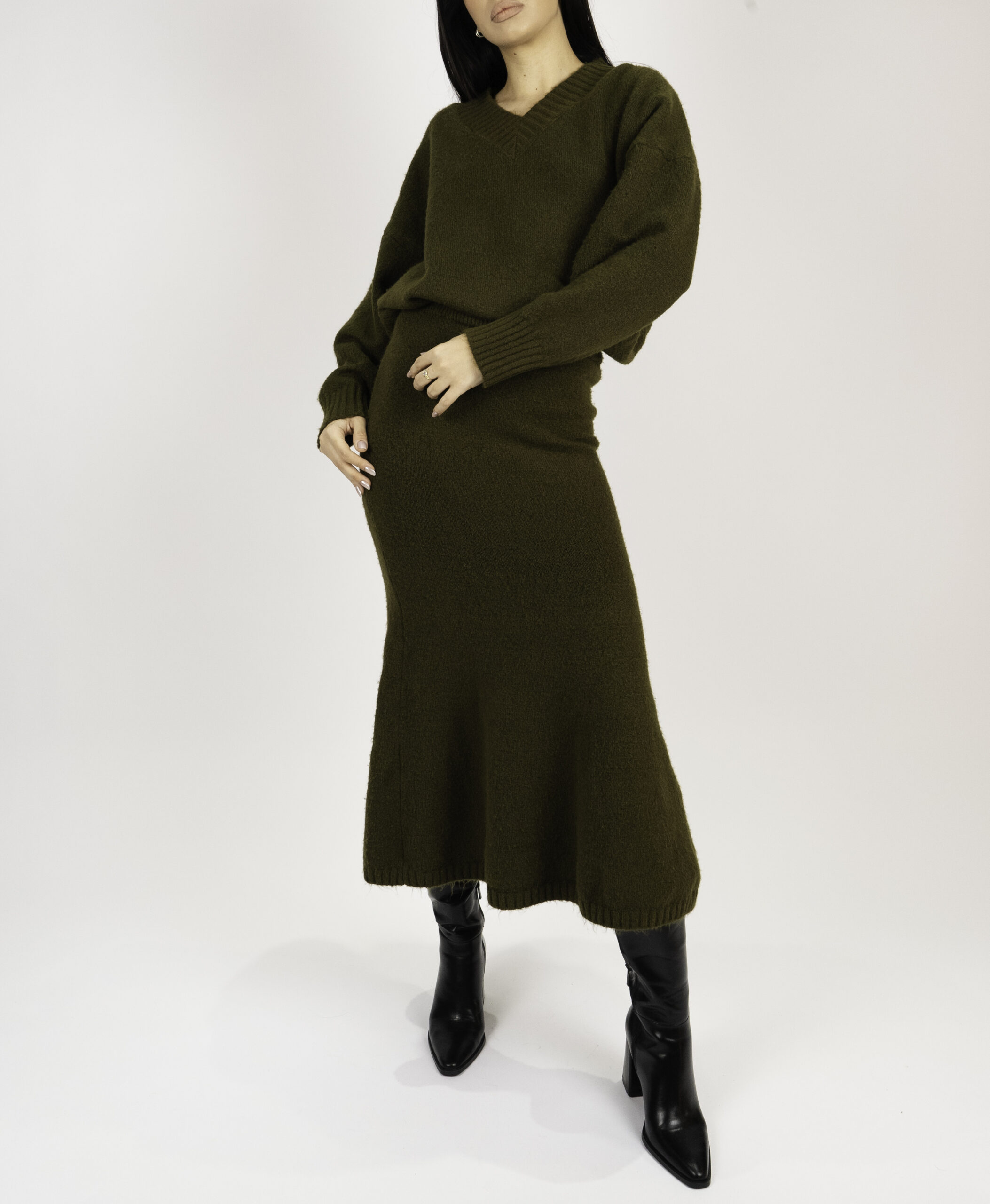 Set tricotat fusta și pulover din lana
