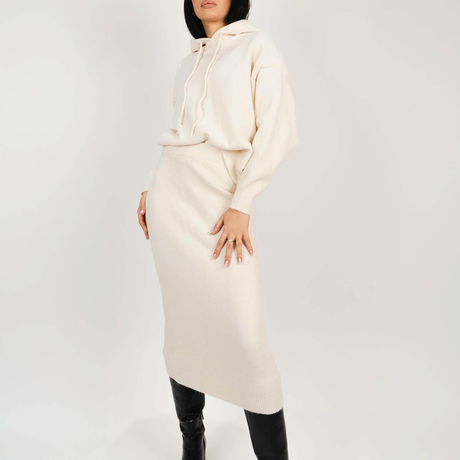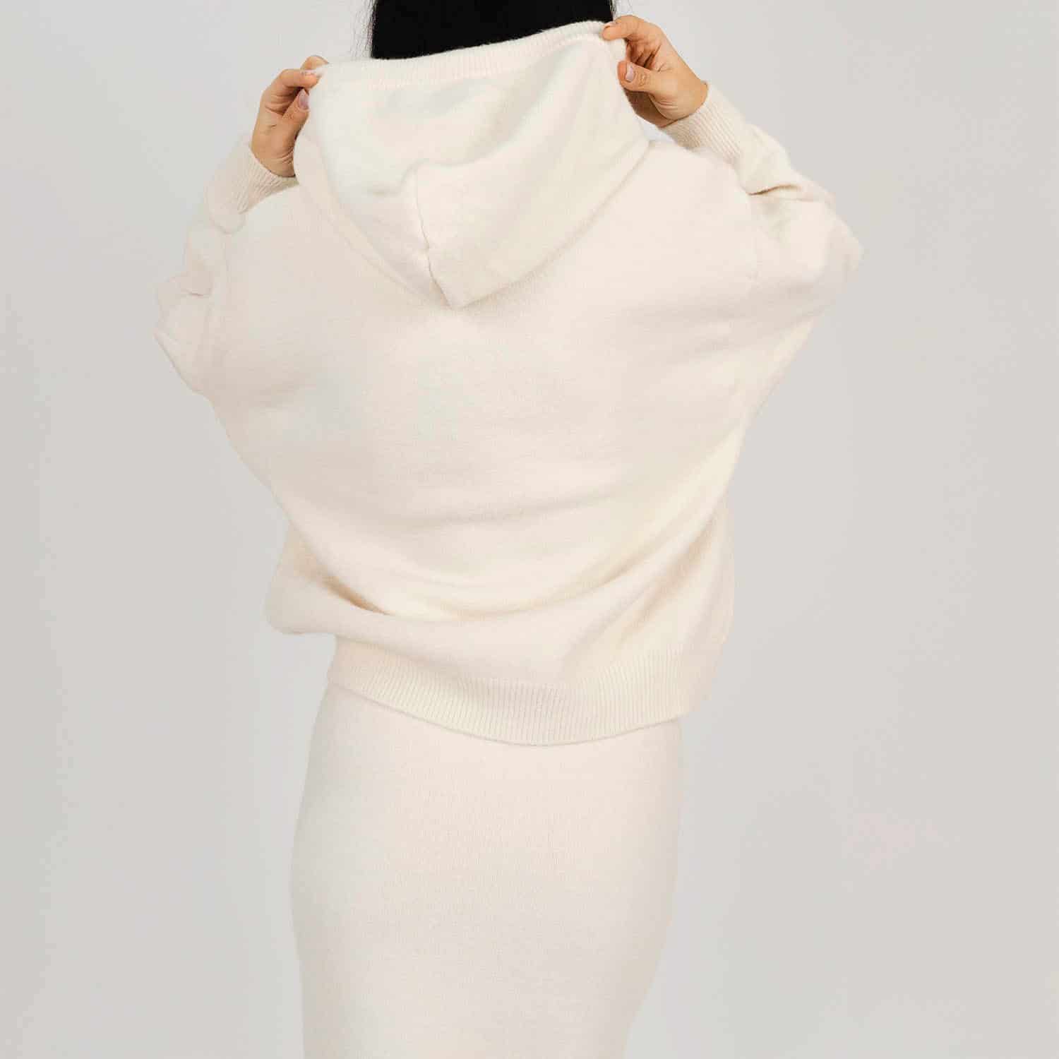 Set tricotat fusta și hanorac ivory din lana