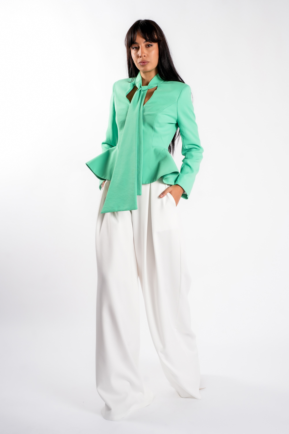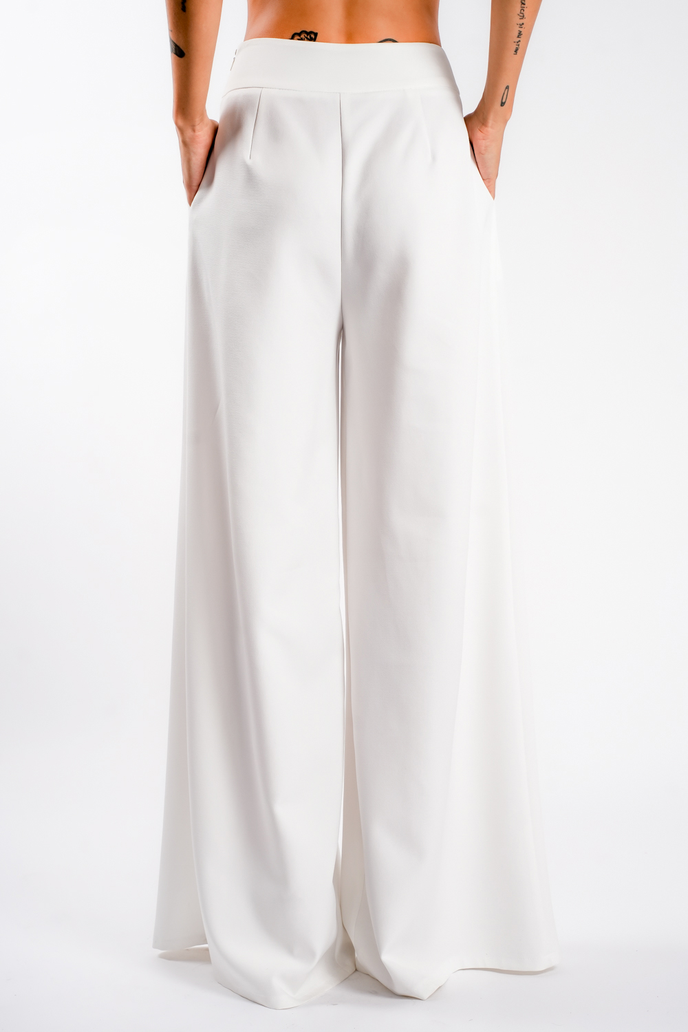 Pantalon elegant cu croiala ampla si talie inalta, definit de pliuri generoase care adauga volum si miscare fluida. Silueta este alungita si sofisticata, potrivita atat pentru tinute de zi, cat si pentru aparitii rafinate. Se inchide lateral si are buzunare functionale.