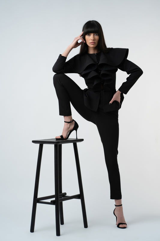 Un clasic esential reinterpretat intr-o varianta moderna si versatila. Pantalonii cigarette din crep ofera o croiala impecabila, care urmareste natural linia corpului si pune in valoare silueta. Designul curat este completat de buzunare laterale functionale, iar talia usor inalta confera un efect de alungire a picioarelor. Materialul asigura confort si libertate de miscare, facandu-i alegerea perfecta pentru tinute de zi si de seara.