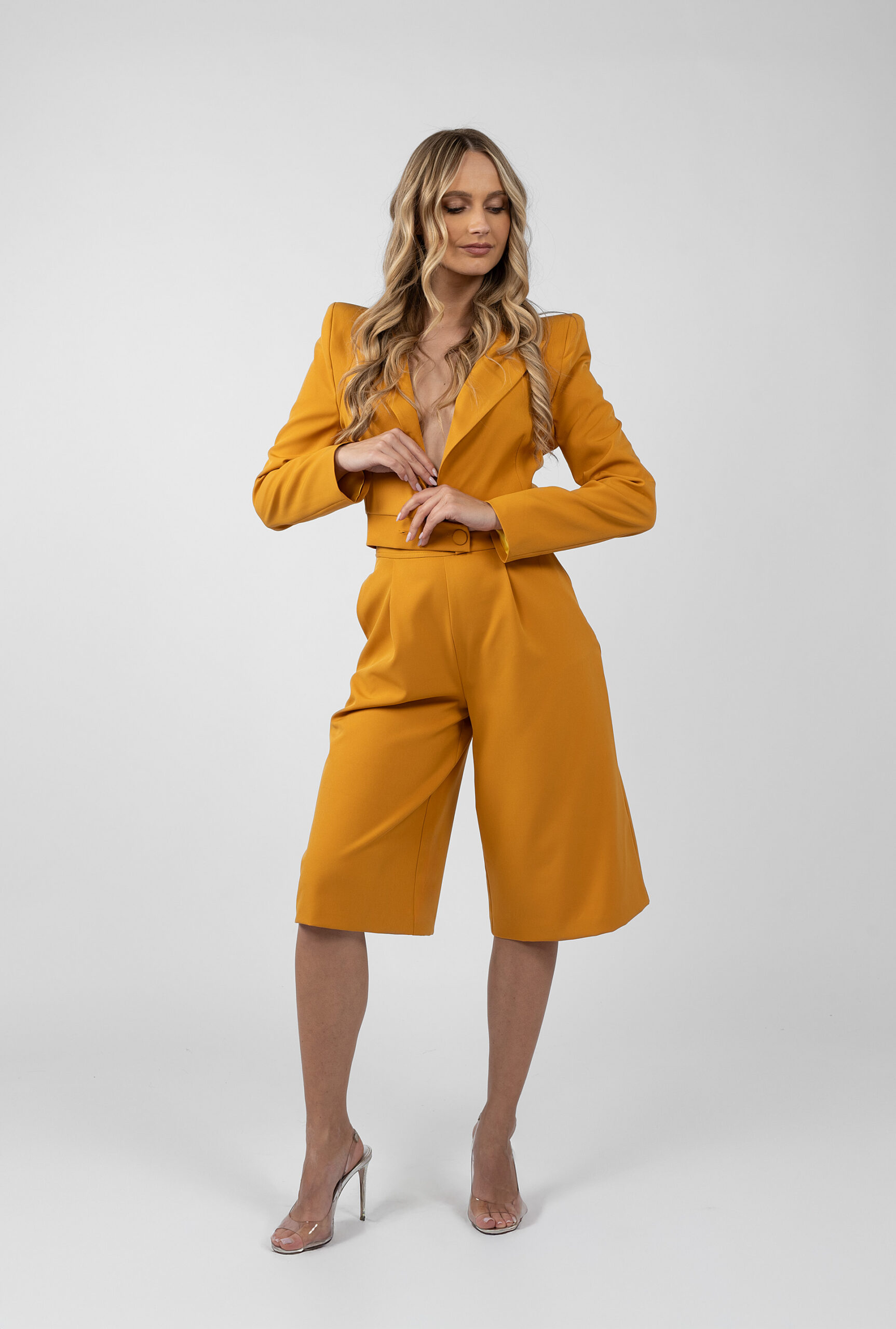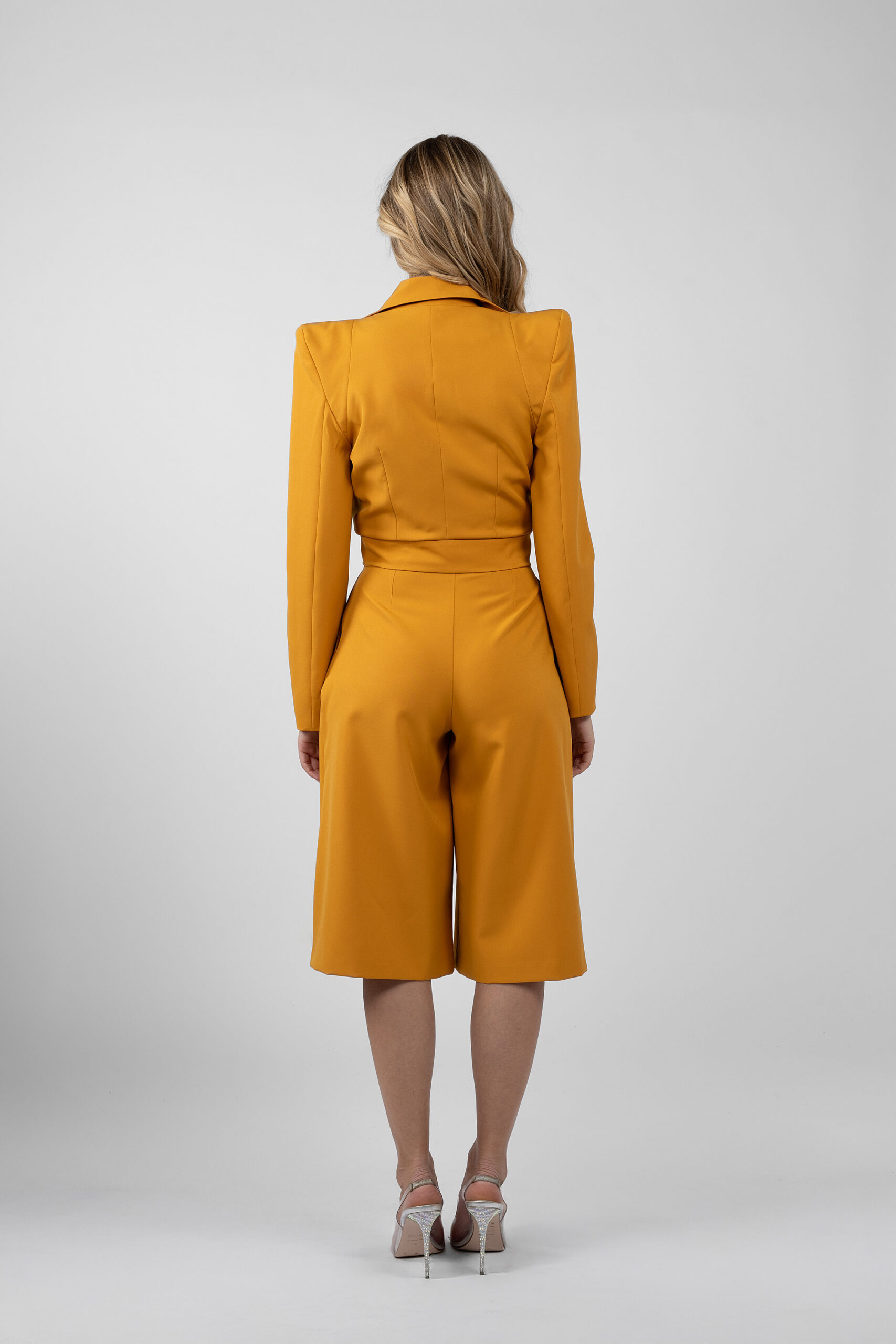 Pantaloni cu croiala ampla si talie inalta, conceputi pentru a alungi silueta si a crea un echilibru elegant intre structura si lejeritate. Linia culotte ofera libertate de miscare si un aer modern, pastrand in acelasi timp o estetica rafinata.