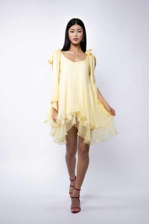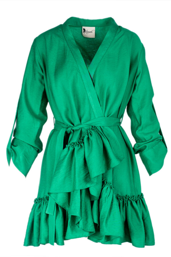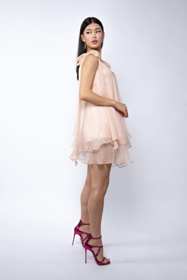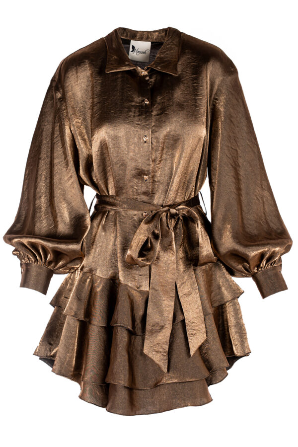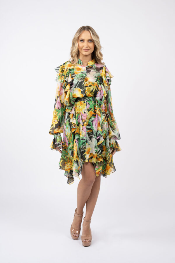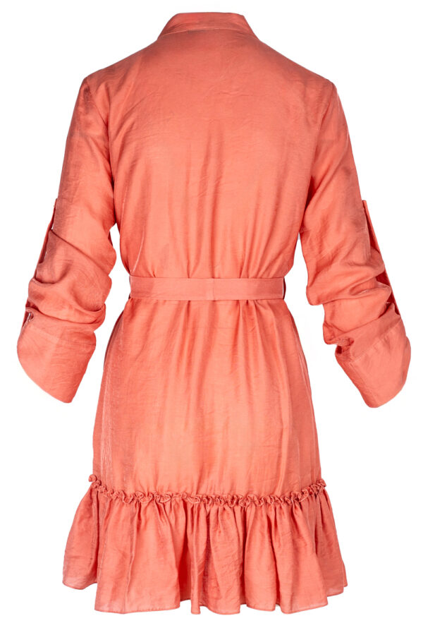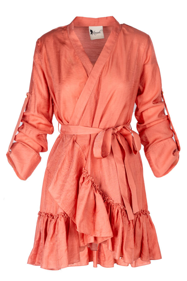 Rochie petrecuta cu mansete late si volan Sunset Orange