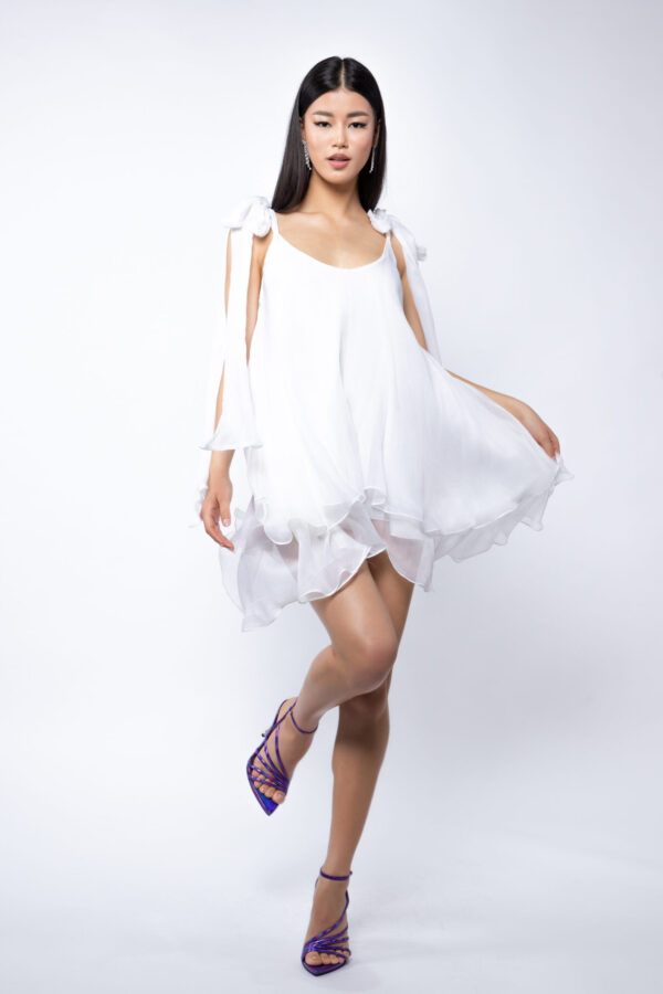 Sacou stil rochie Ringoux White cu umeri sculpturali