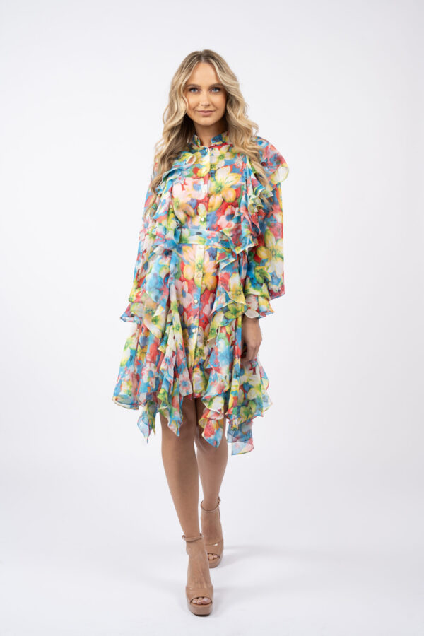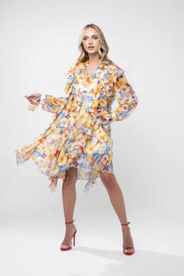 Rochie tip sacou cu volane structurate