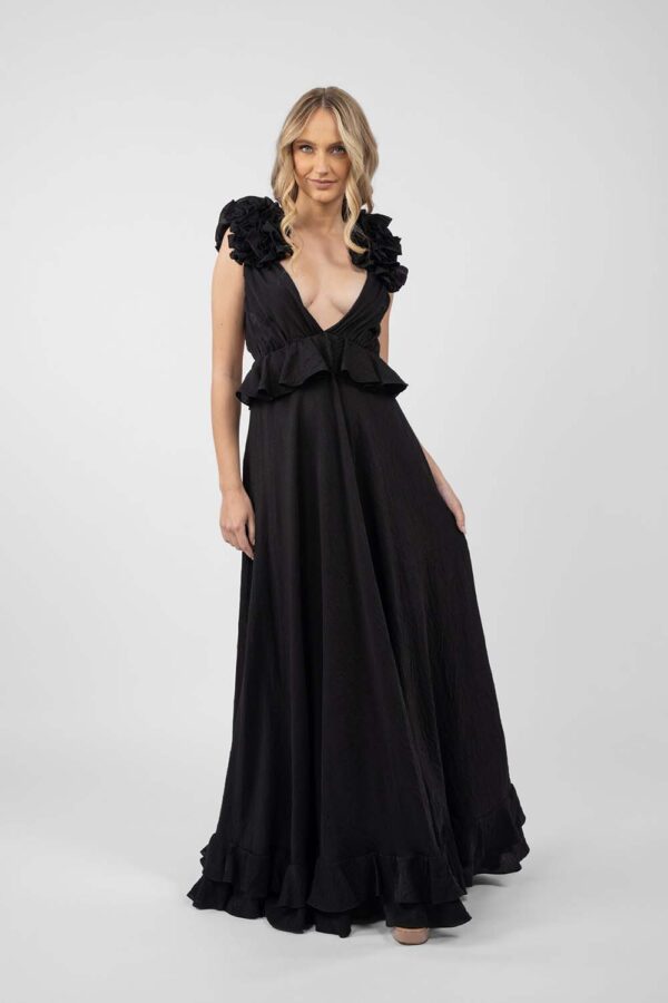 Rochie lunga cu decupaje si volane Black