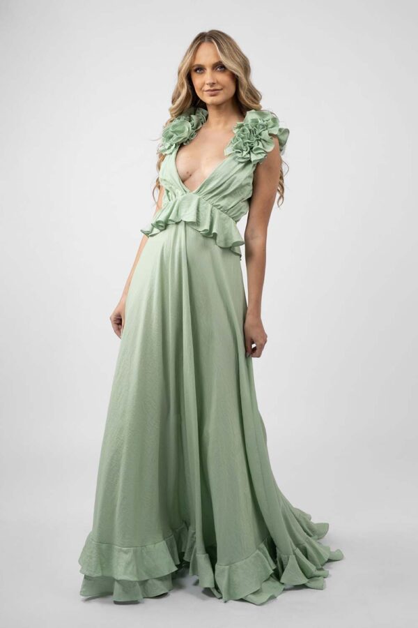 Rochie lunga cu decupaje si volane Mint