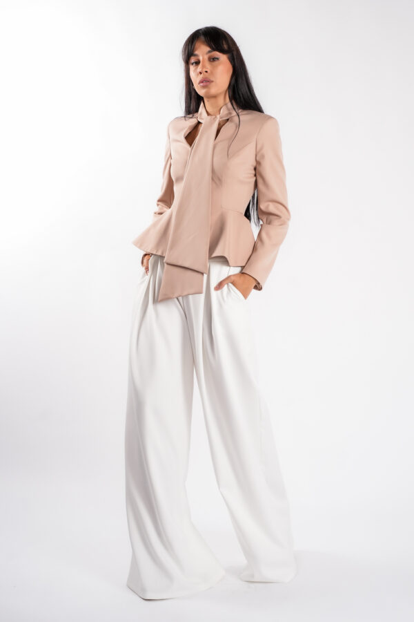 Sacou cu esarfe si talie structurata Nude