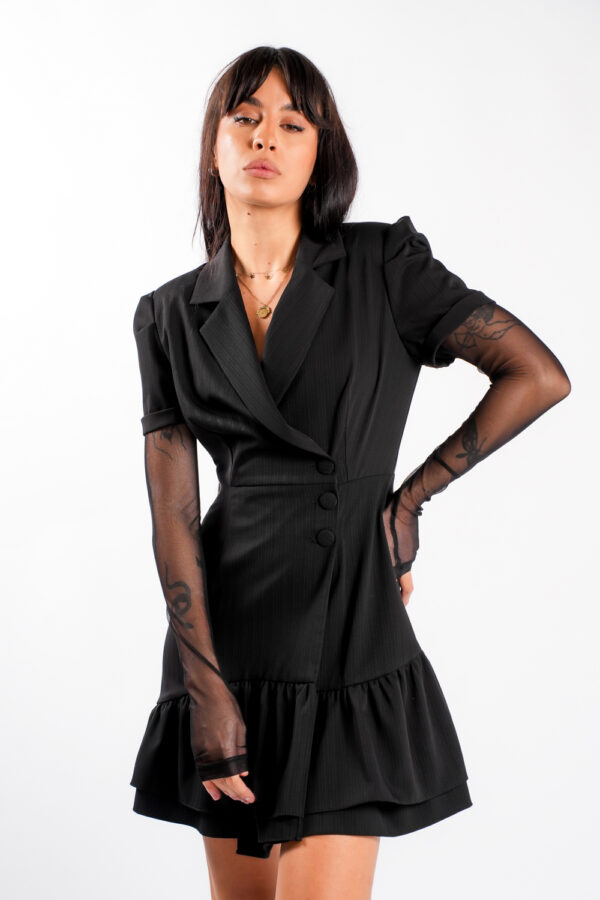 Rochie tip sacou cu maneci din tulle fin
