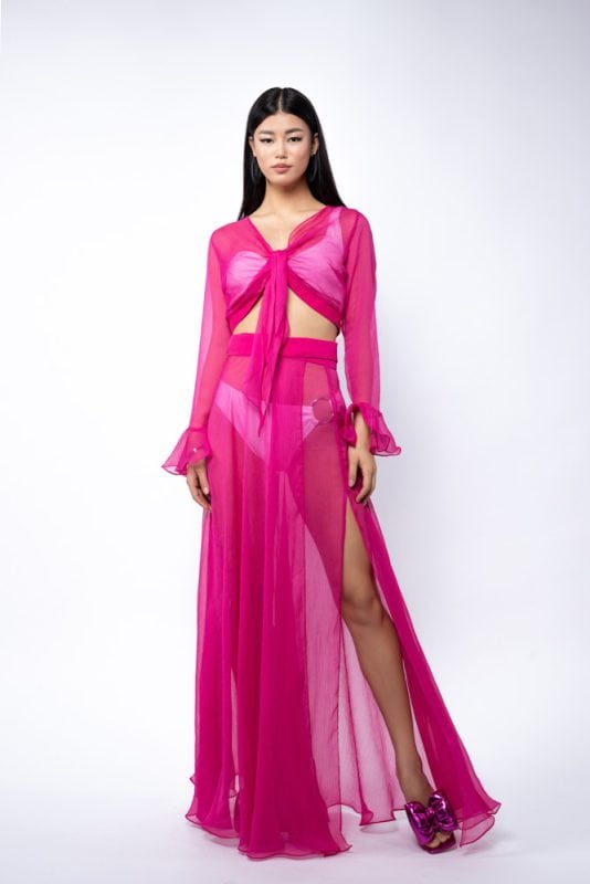 Rochie A-line din satin fin, cu o croiala lejera si bretele delicate, ce urmareste linia corpului cu fluiditate naturala. Imprimeul vibrant adauga prospetime si eleganta, iar jocul cromatic evidentiaza rafinamentul texturii. O piesa potrivita atat pentru vacante exotice, cat si pentru evenimente de vara, purtata cu sandale fine sau flats.