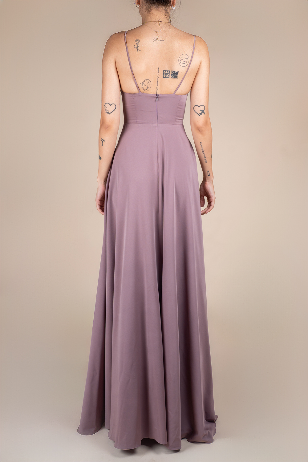 Bretelele subțiri oferă un look modern și rafinat, adăugând un element de finețe și grație.