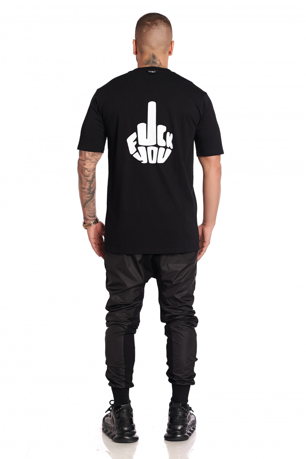 Tricou 2Words1Finger. Tricou cu mesaj imprimat pe față și logogramă pe spate. Ideal pentru un look streetstyle cool.