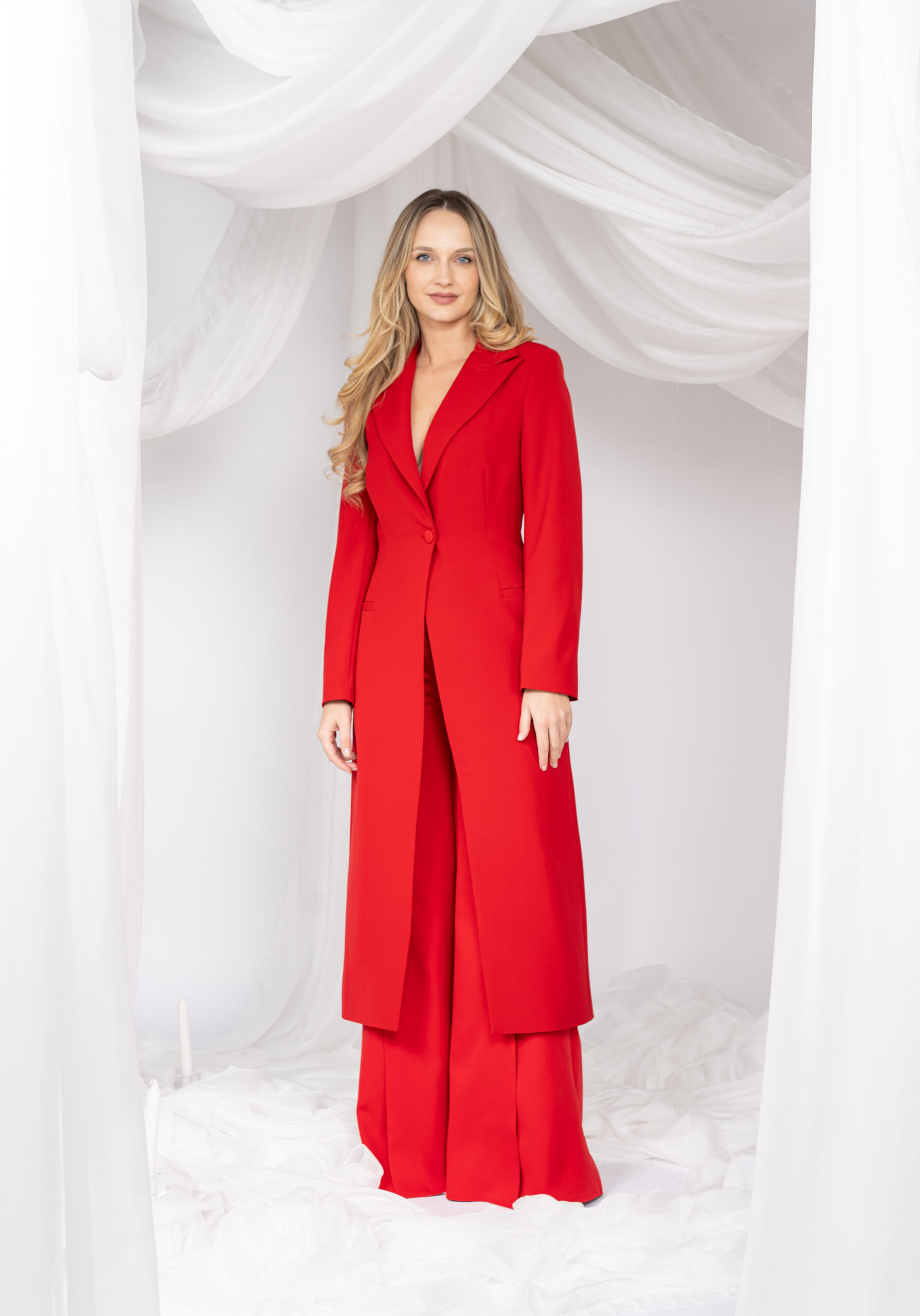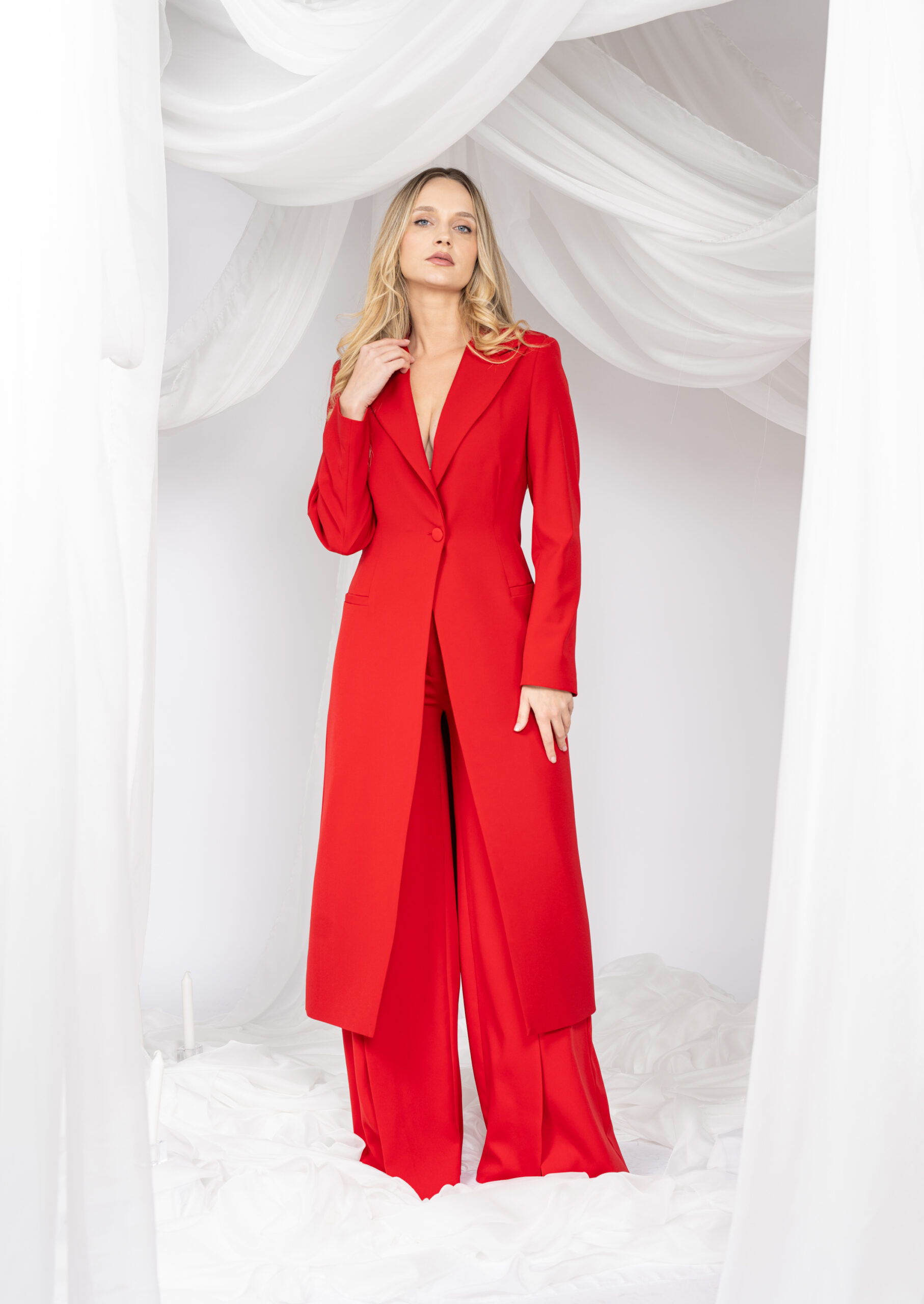 Sacou lung cu design elegant si linii curate, creat pentru o silueta alungita si rafinata. Croiala cambrata evidentiaza talia, iar lungimea peste genunchi accentueaza verticalitatea. Slitul discret la spate adauga libertate de miscare si un plus de rafinament, completand armonios designul. O piesa versatila, potrivita pentru aparitii speciale, tinute de seara sau styling-uri elegante.