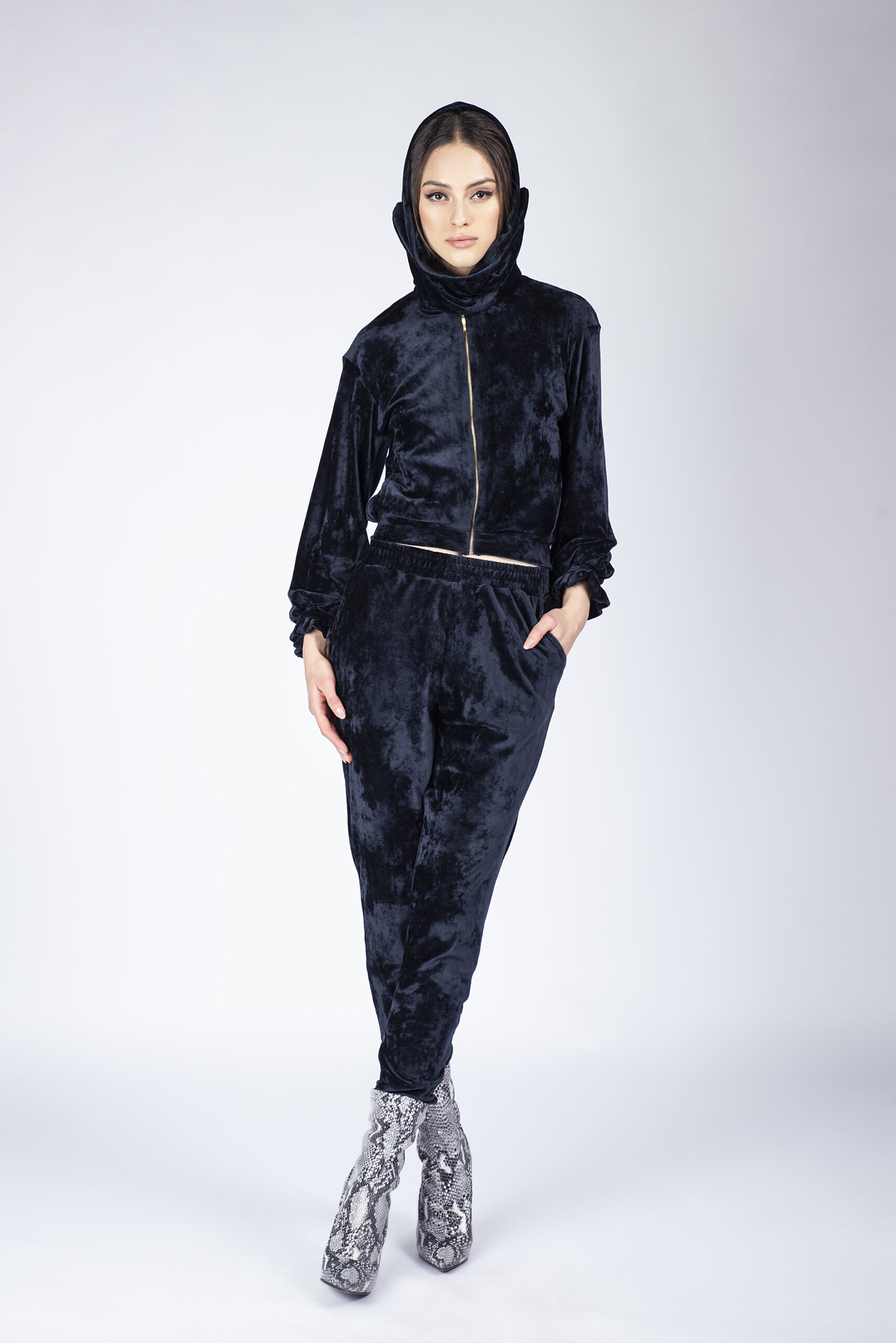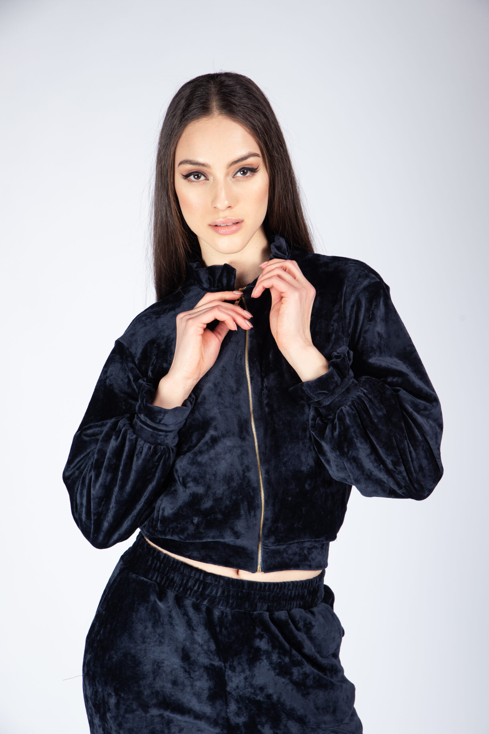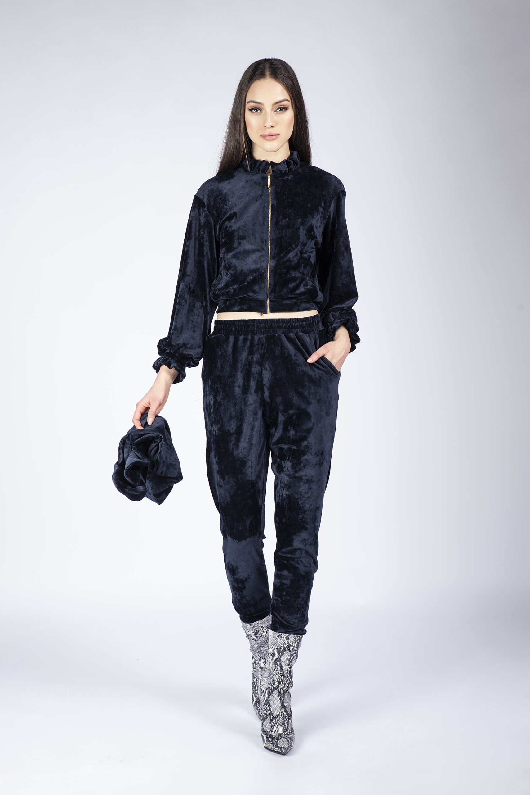 Trening din catifea cu fermoar, creat pentru un look modern și confortabil. Designul casual și materialul moale fac din acest trening o alegere perfectă pentru zilele de relaxare.