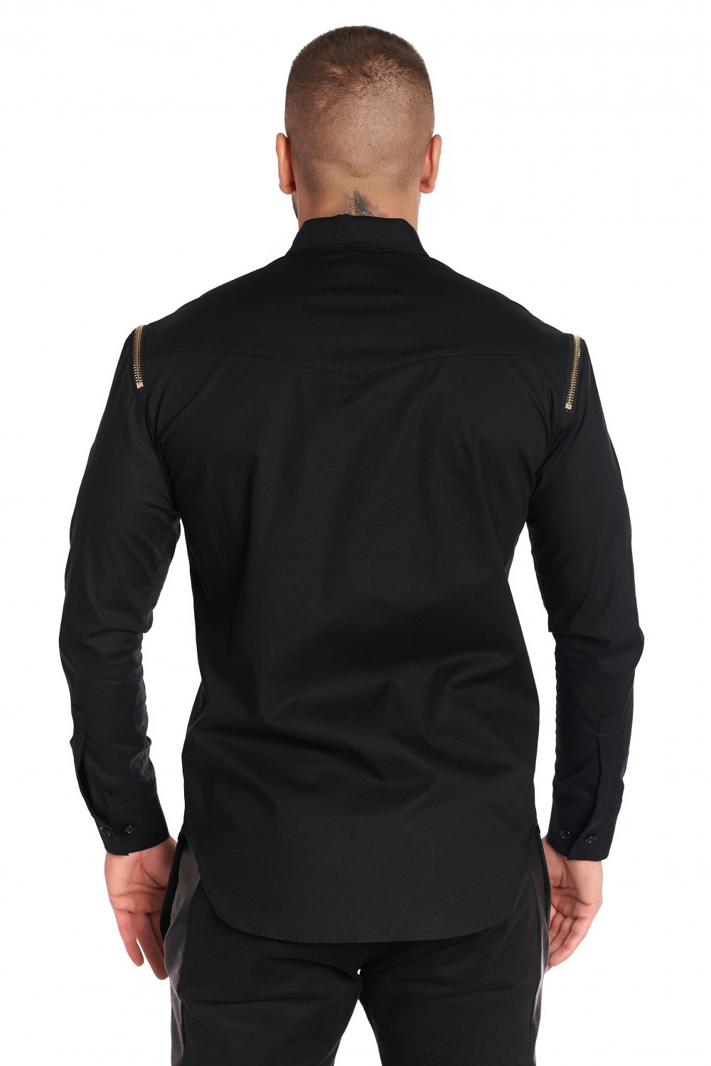 Cămașă Shoulder Zipper. Cămașă cu fermoare aplicate pe umeri pentru un plus de swag. Datorită poziționării fermoarelor cămașă oferă o postură angulară elegantă și un plus de stil.