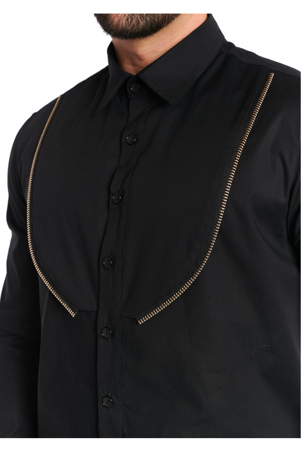 Cămașă V Zipp. Cămașă cu fermoare aplicate de-a lungul pieptului în formă de “V”. Detaliu ce scoate în evidență structura cămășii și o transformă dintr-o simplă piesă vestimentară, într-una swagger pentru un outfit cool.
